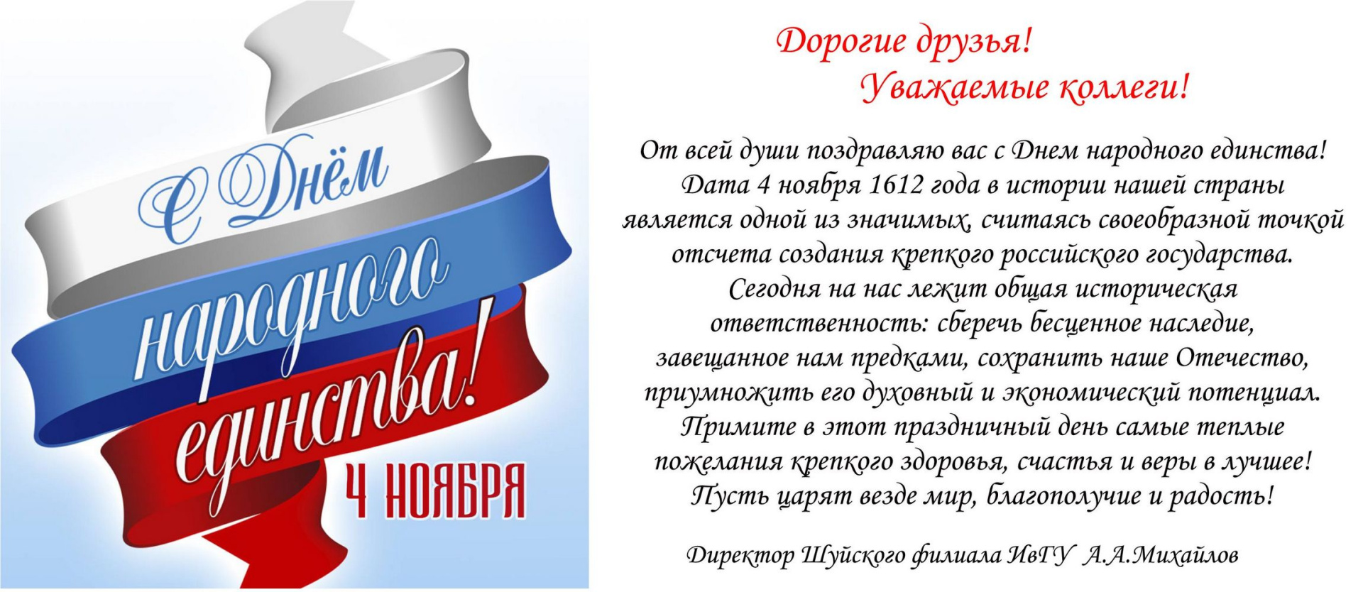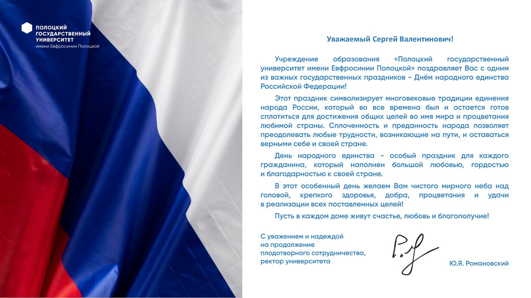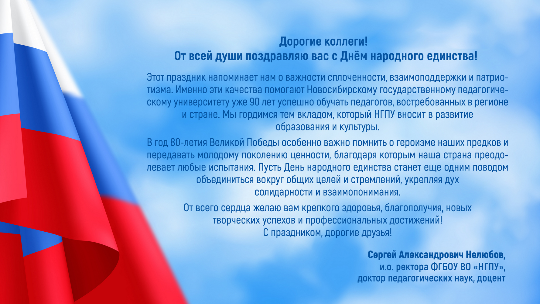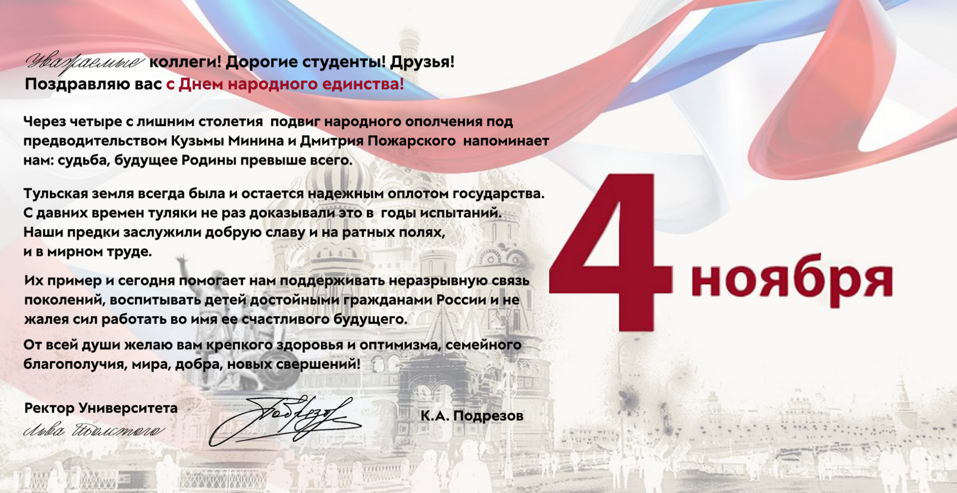 Герценовский университет принимает поздравления с Днем народного единства