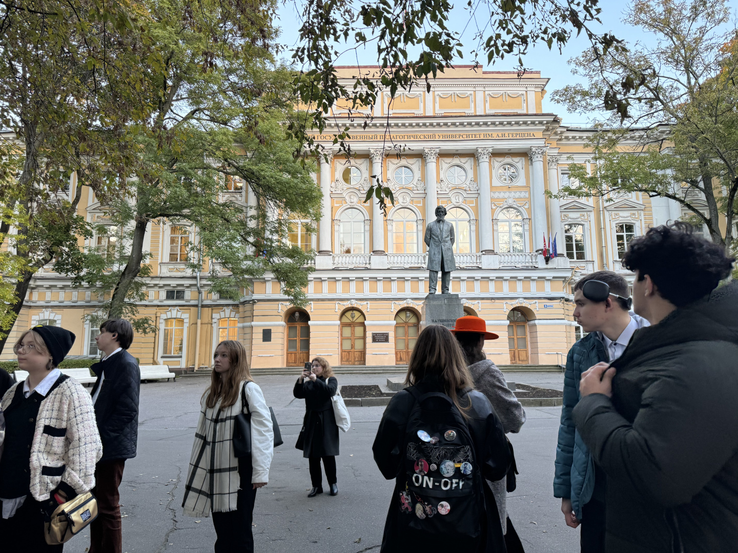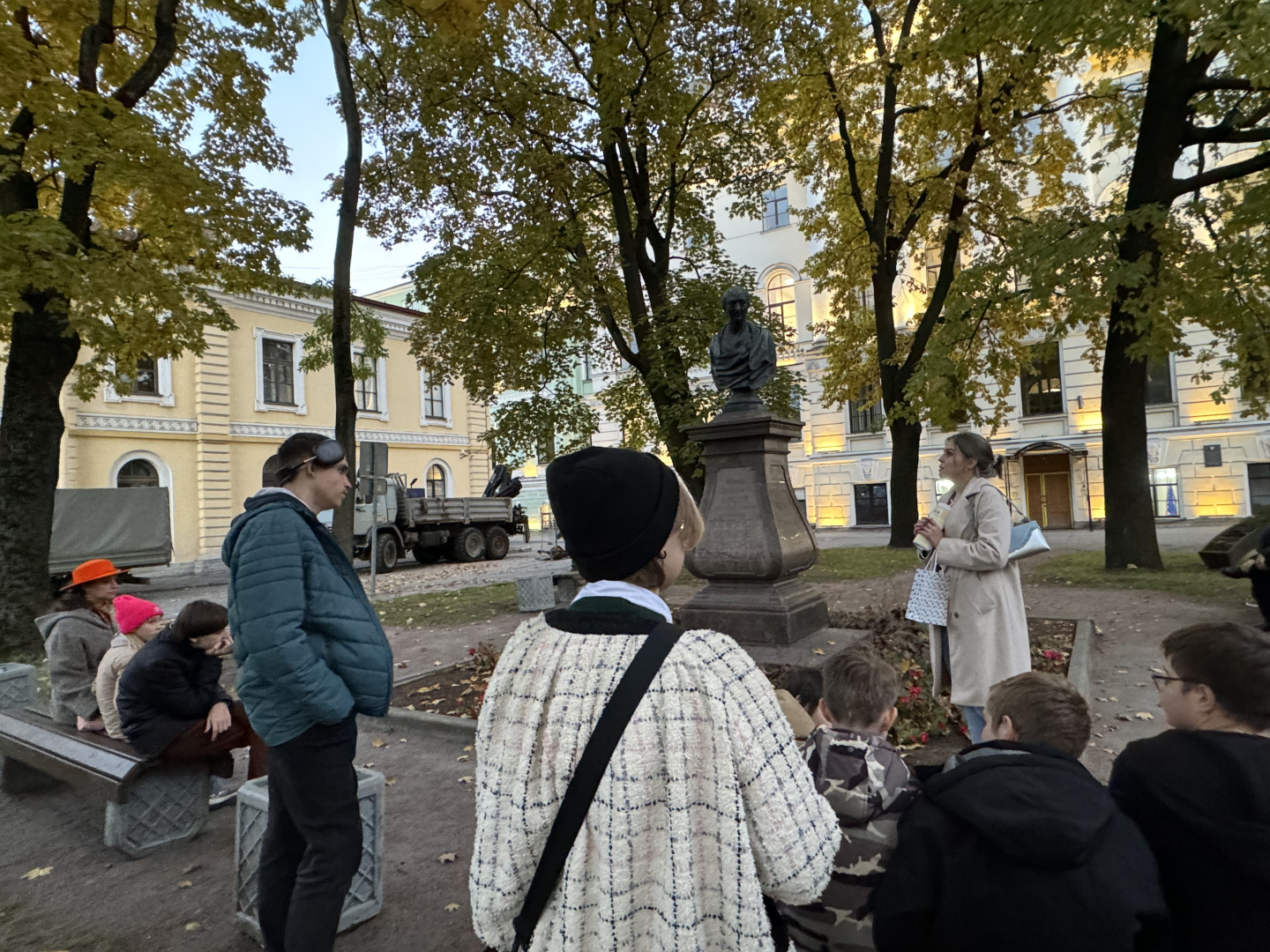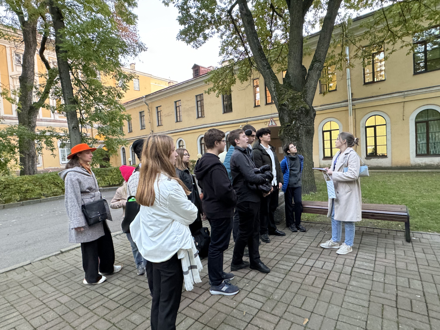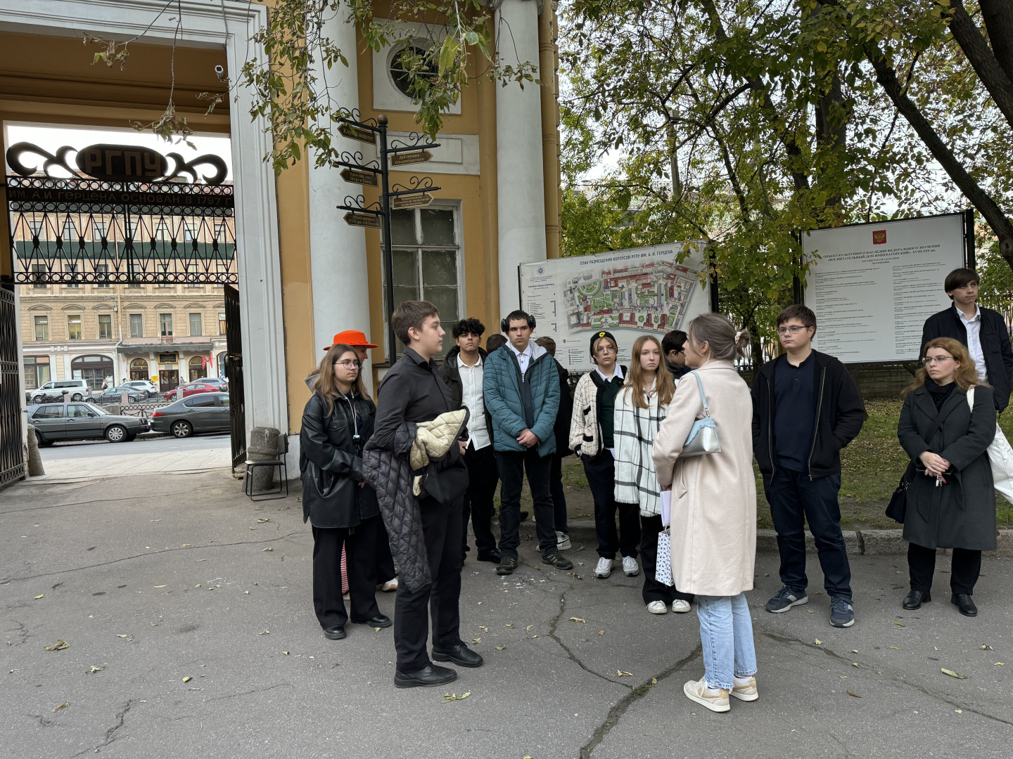 Завершающая часть квеста прошла как «путешествие по университету»: учащиеся познакомились с историей городских достопримечательностей, проследили развитие старейшего педагогического вуза страны — от зарождения воспитательного дома в XVIII веке до событий современной студенческой жизни. В ходе прогулки участники также коснулись трагических страниц истории университета: роли студентов и сотрудников в Великой Отечественной войне. Именно это сочетание аналитики и локального контекста помогло школьникам закрепить полученные знания и увидеть историю как живой, многослойный процесс.