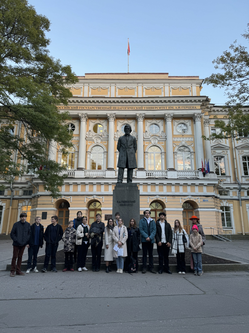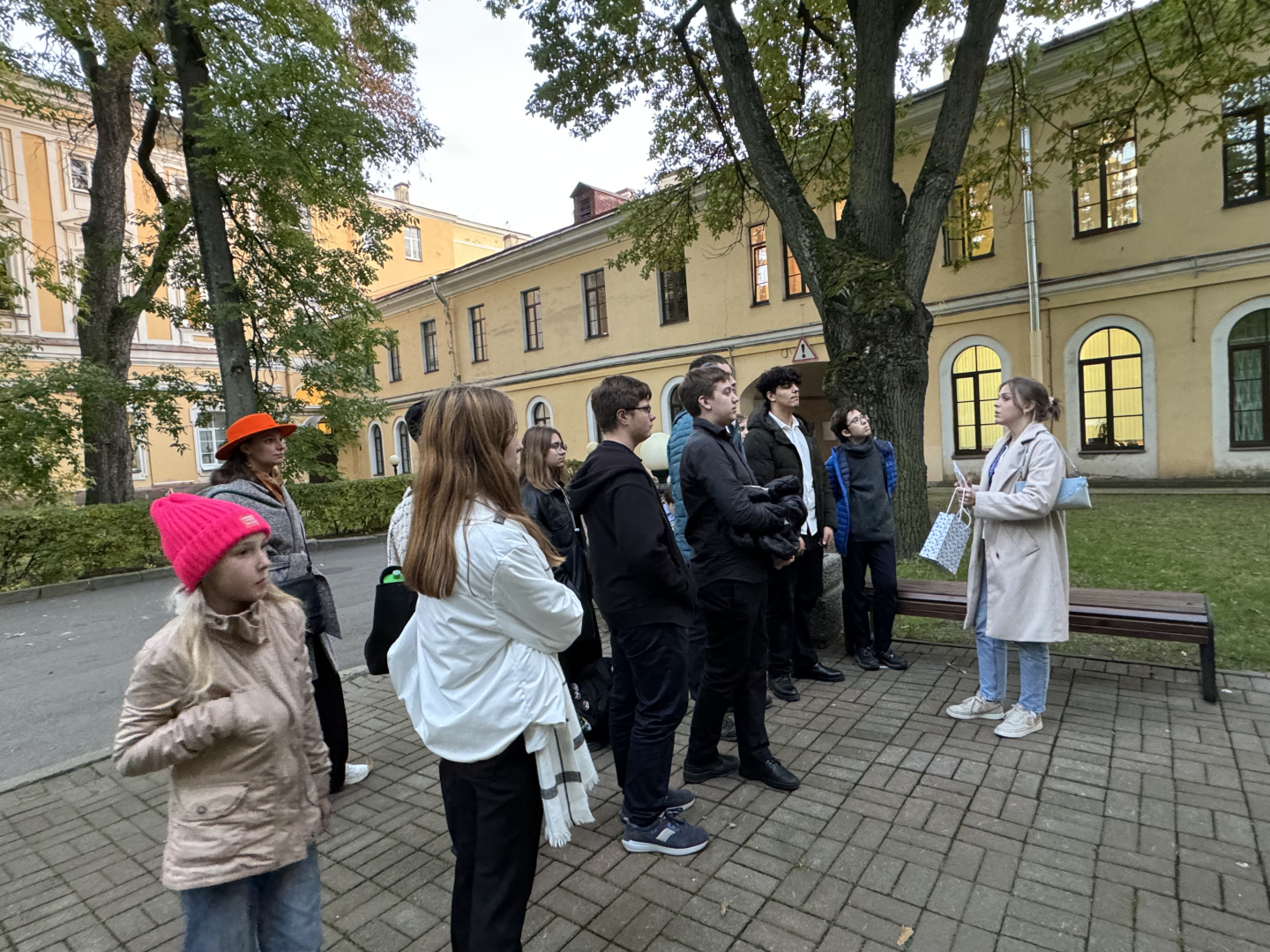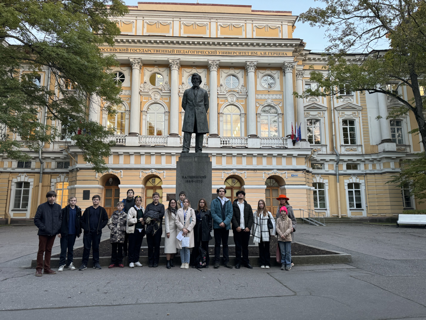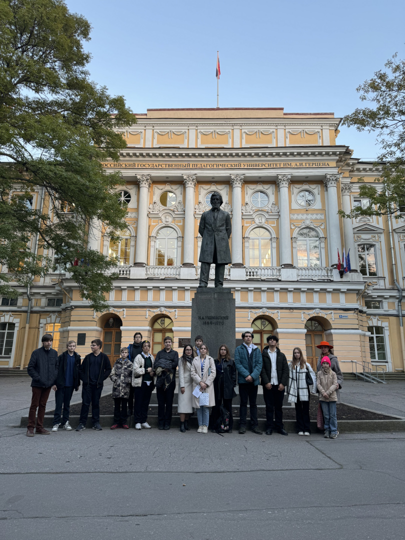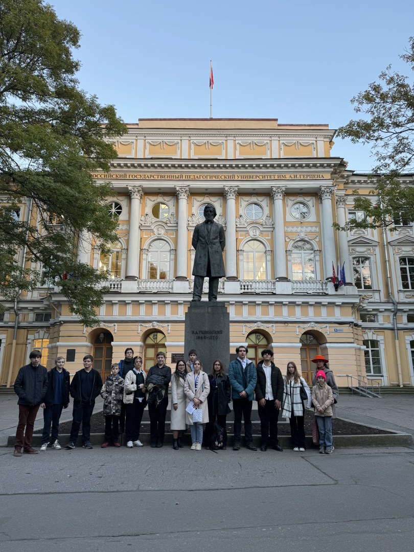 Завершающая часть квеста прошла как «путешествие по университету»: учащиеся познакомились с историей городских достопримечательностей, проследили развитие старейшего педагогического вуза страны — от зарождения воспитательного дома в XVIII веке до событий современной студенческой жизни. В ходе прогулки участники также коснулись трагических страниц истории университета: роли студентов и сотрудников в Великой Отечественной войне. Именно это сочетание аналитики и локального контекста помогло школьникам закрепить полученные знания и увидеть историю как живой, многослойный процесс.