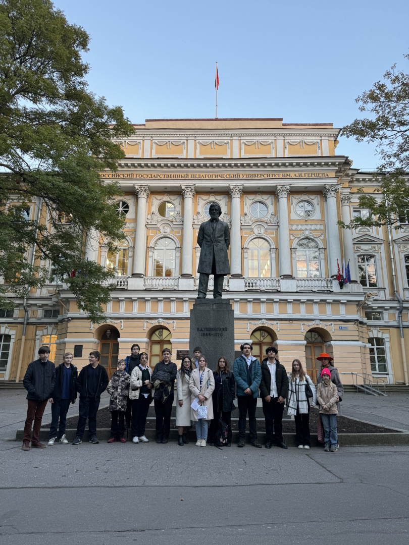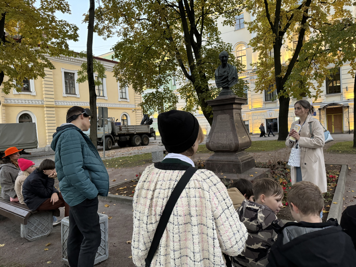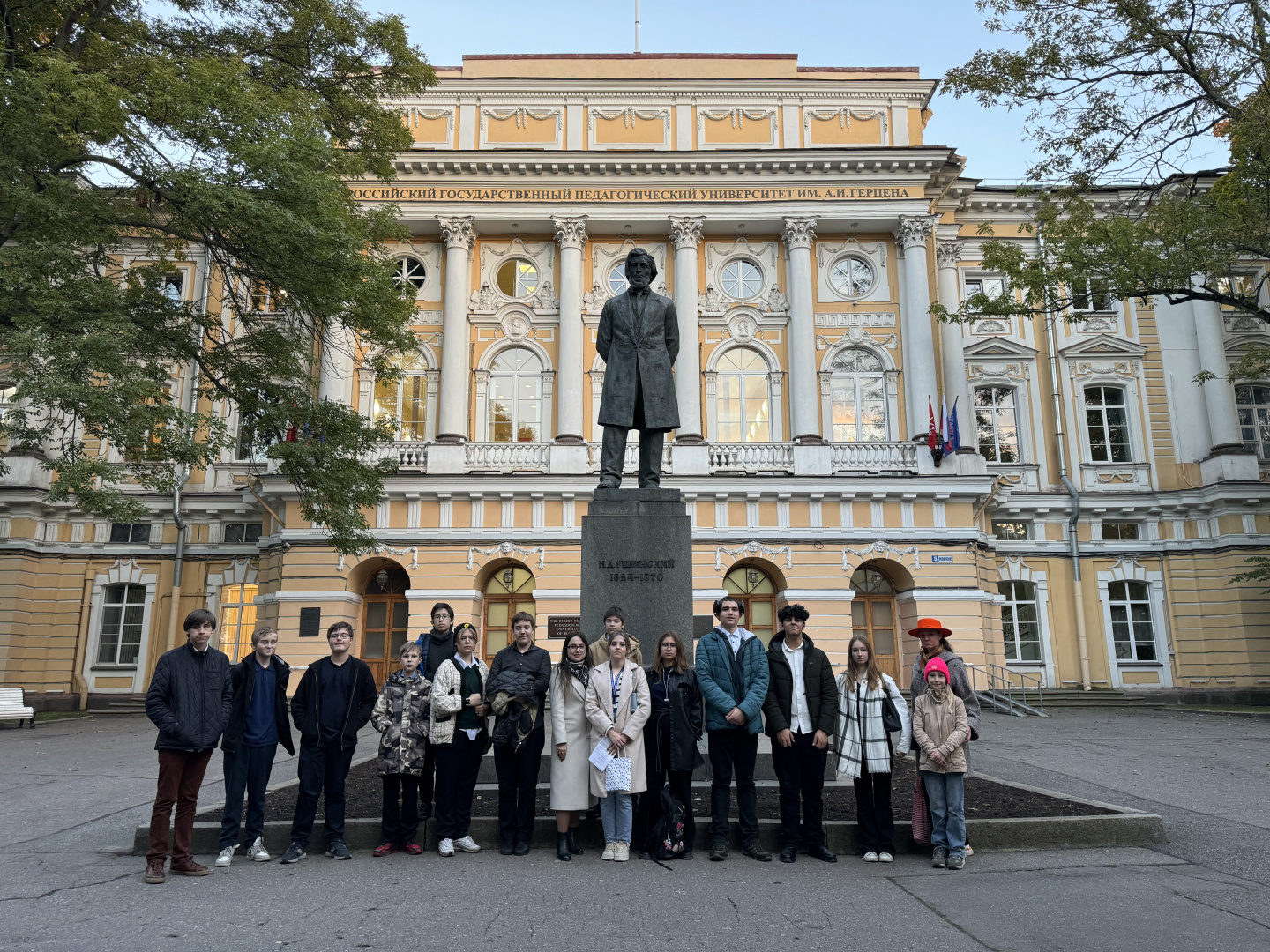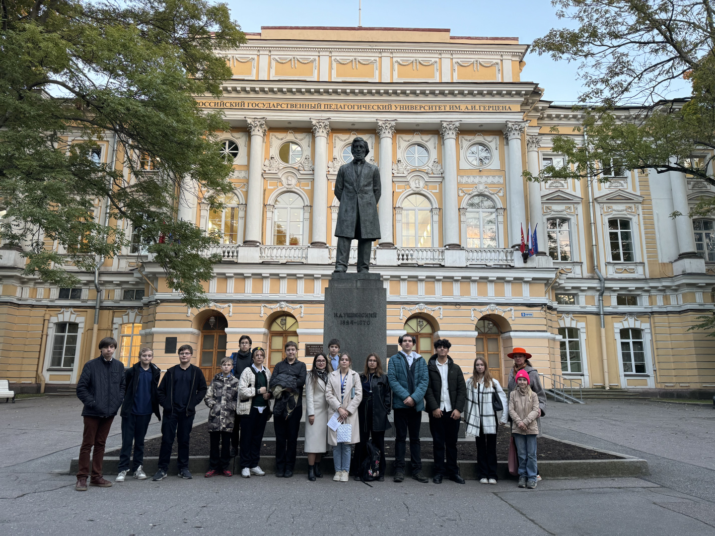 Завершающая часть квеста прошла как «путешествие по университету»: учащиеся познакомились с историей городских достопримечательностей, проследили развитие старейшего педагогического вуза страны — от зарождения воспитательного дома в XVIII веке до событий современной студенческой жизни. В ходе прогулки участники также коснулись трагических страниц истории университета: роли студентов и сотрудников в Великой Отечественной войне. Именно это сочетание аналитики и локального контекста помогло школьникам закрепить полученные знания и увидеть историю как живой, многослойный процесс.