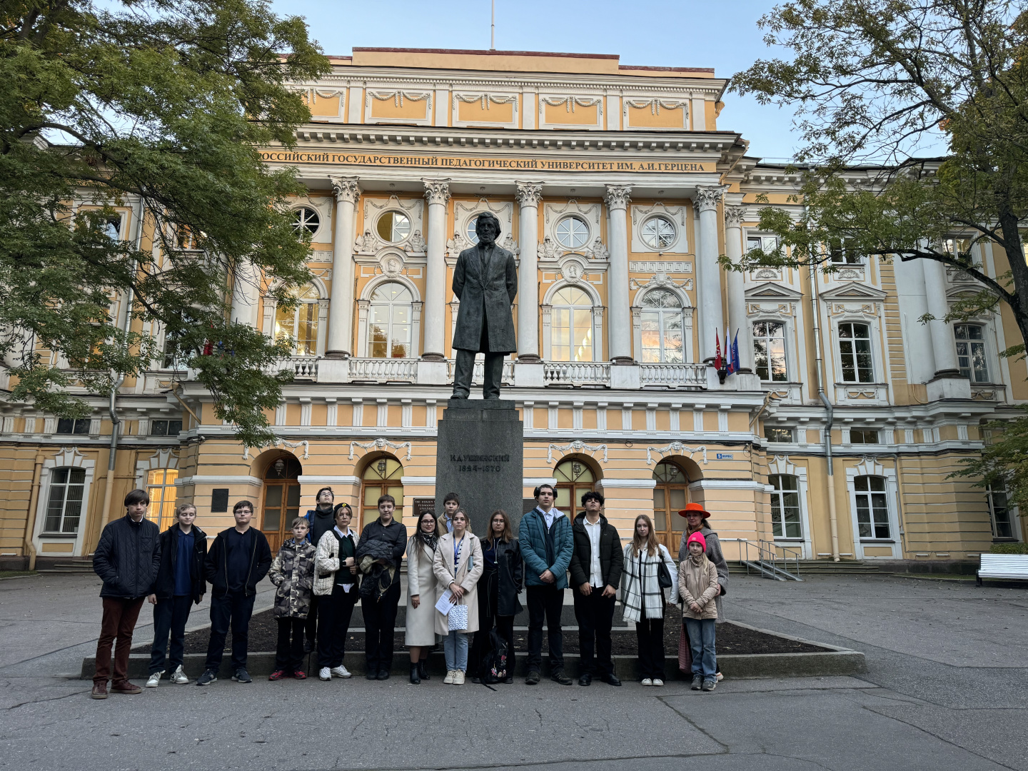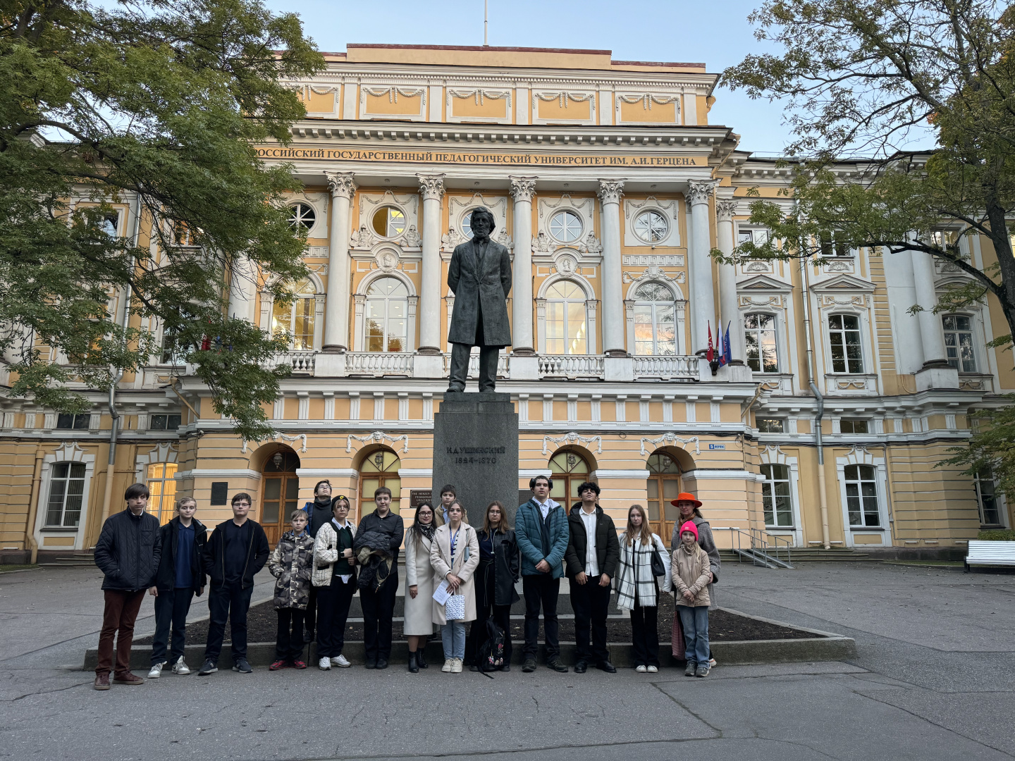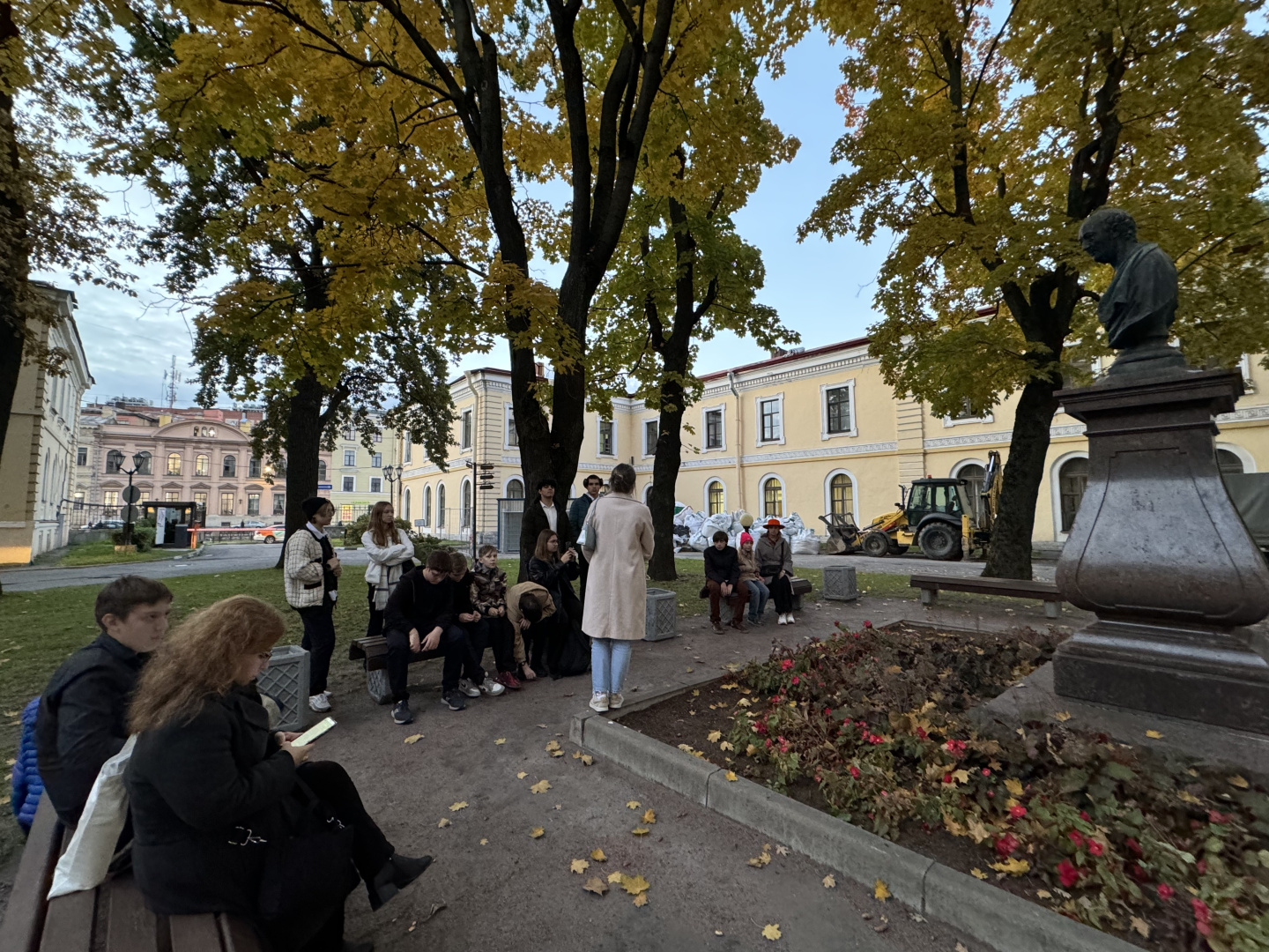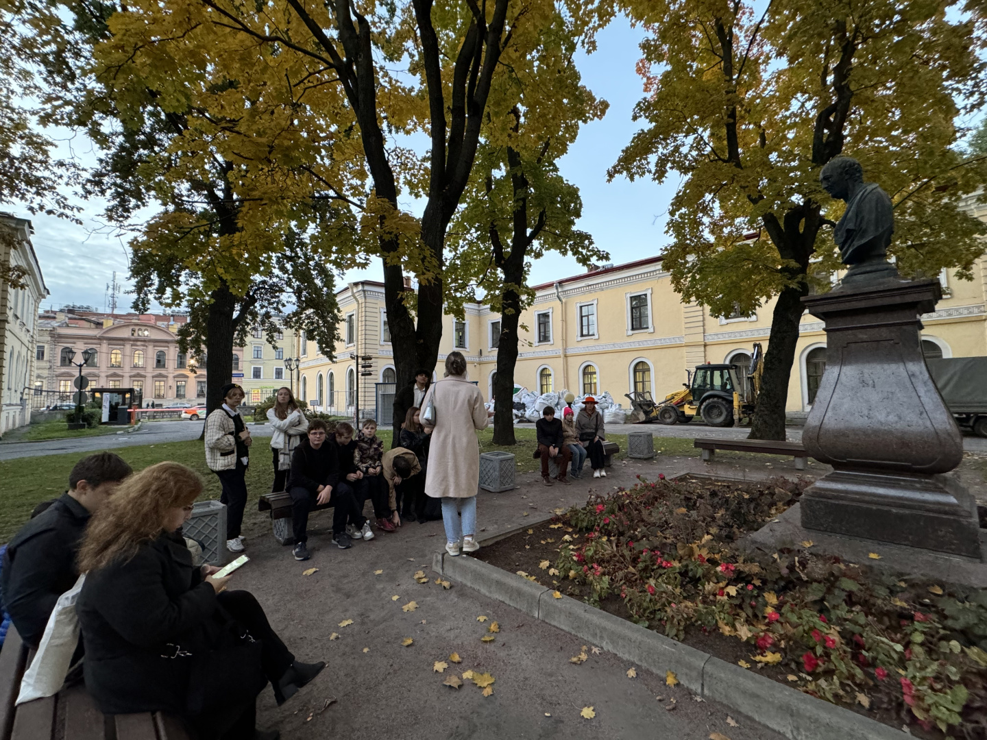 Завершающая часть квеста прошла как «путешествие по университету»: учащиеся познакомились с историей городских достопримечательностей, проследили развитие старейшего педагогического вуза страны — от зарождения воспитательного дома в XVIII веке до событий современной студенческой жизни. В ходе прогулки участники также коснулись трагических страниц истории университета: роли студентов и сотрудников в Великой Отечественной войне. Именно это сочетание аналитики и локального контекста помогло школьникам закрепить полученные знания и увидеть историю как живой, многослойный процесс.