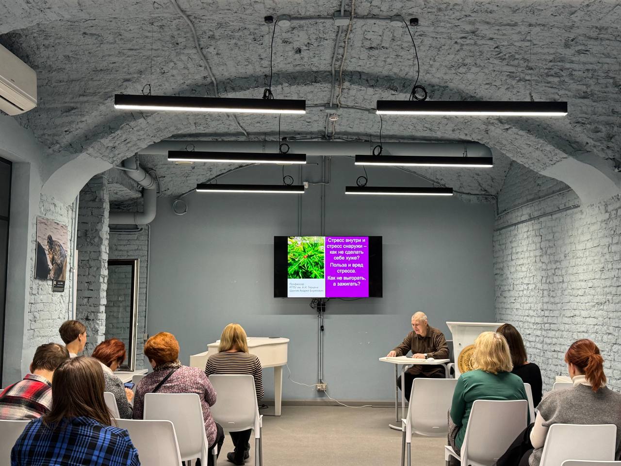 Андрей Борисович рассказал о двойственной природе стресса: о том, что он может быть не только разрушительным, выматывающим и «забирающим энергию», но и развивающим, стимулирующим, помогающим расти и принимать решения. Участники узнали, какие причины и внутренние механизмы запускают стрессовые реакции, как распознать первые признаки перегрузки и что происходит в организме, когда напряжение становится хроническим.