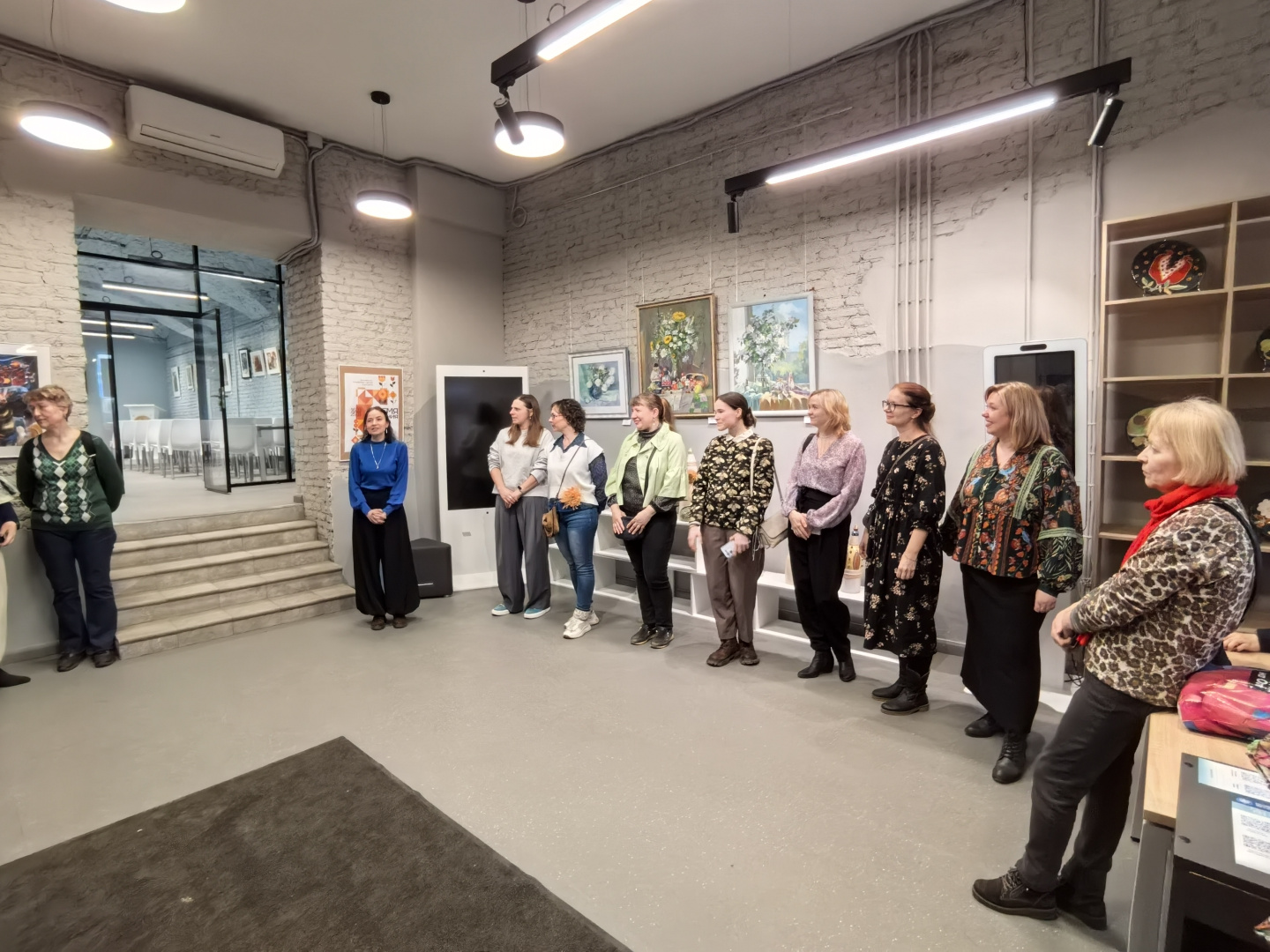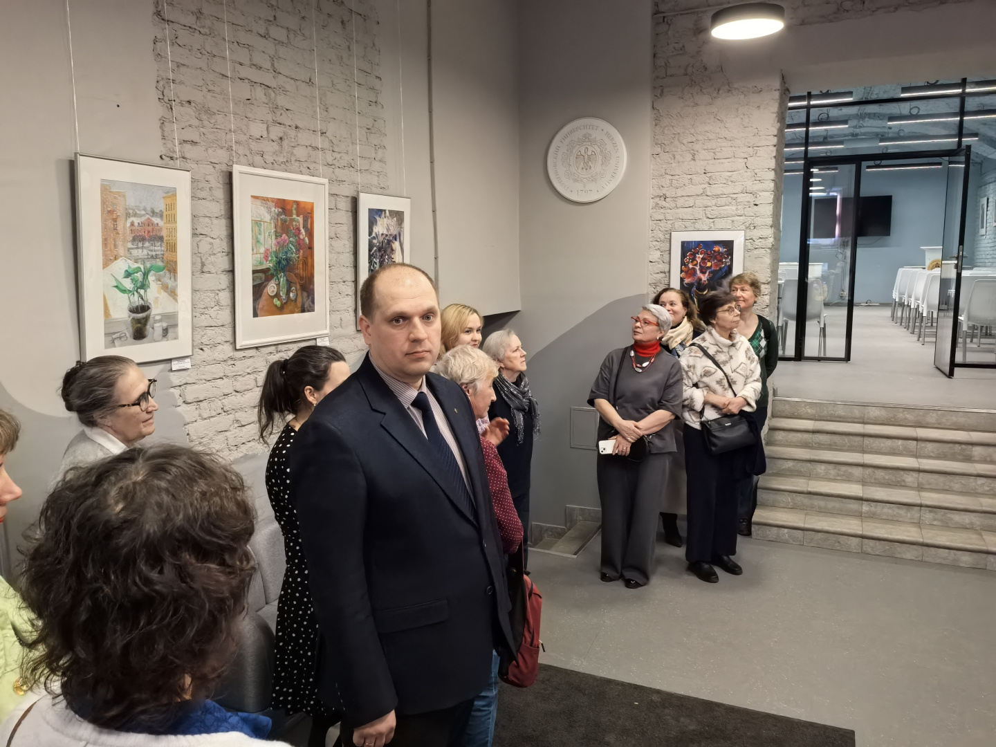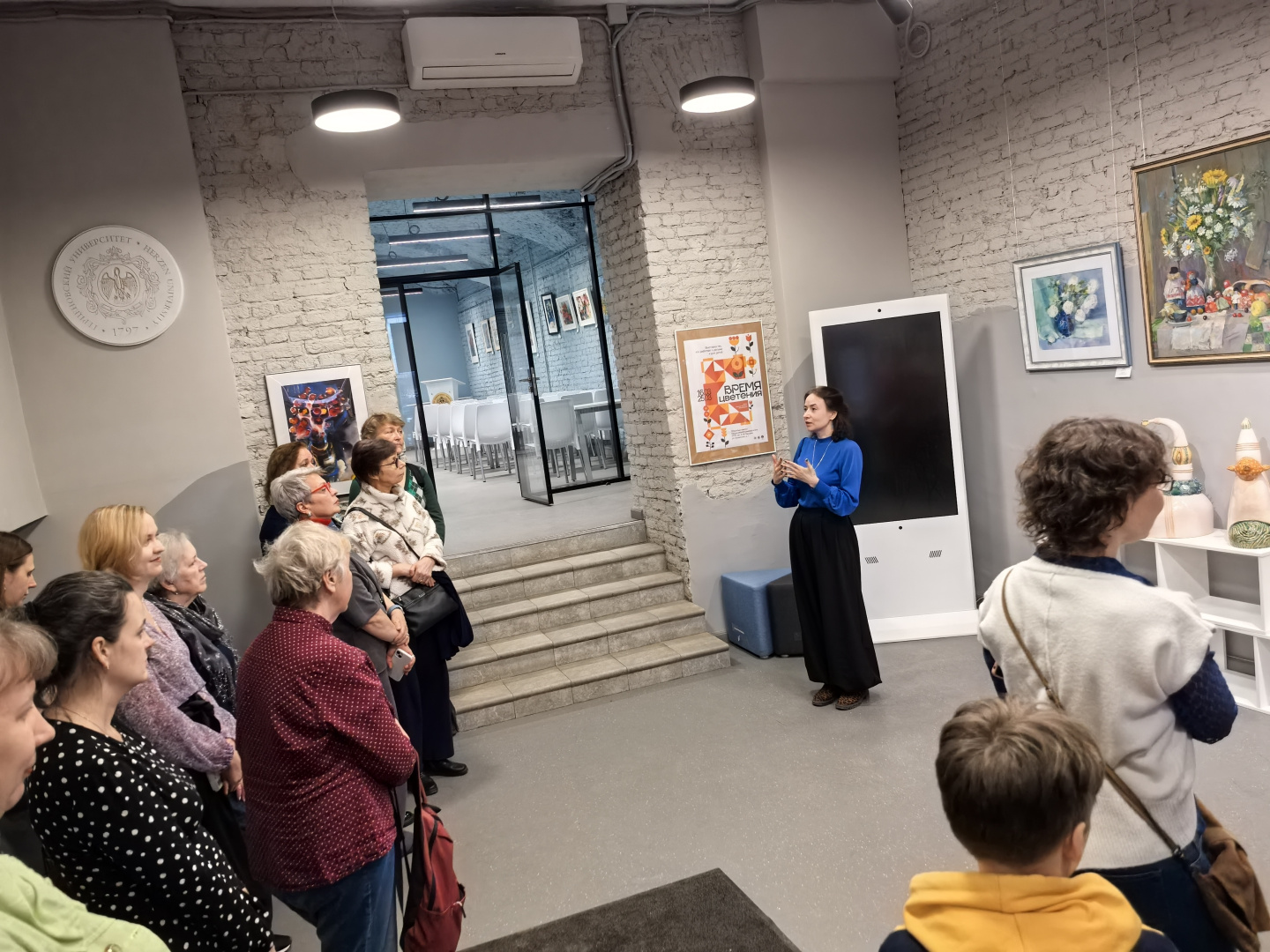 Одним из самых тёплых моментов открытия стало выступление участницы выставки, выпускницы института Лидии Гуровой. Она призналась, что для неё особенно важно снова оказаться в этих стенах — уже как художник.