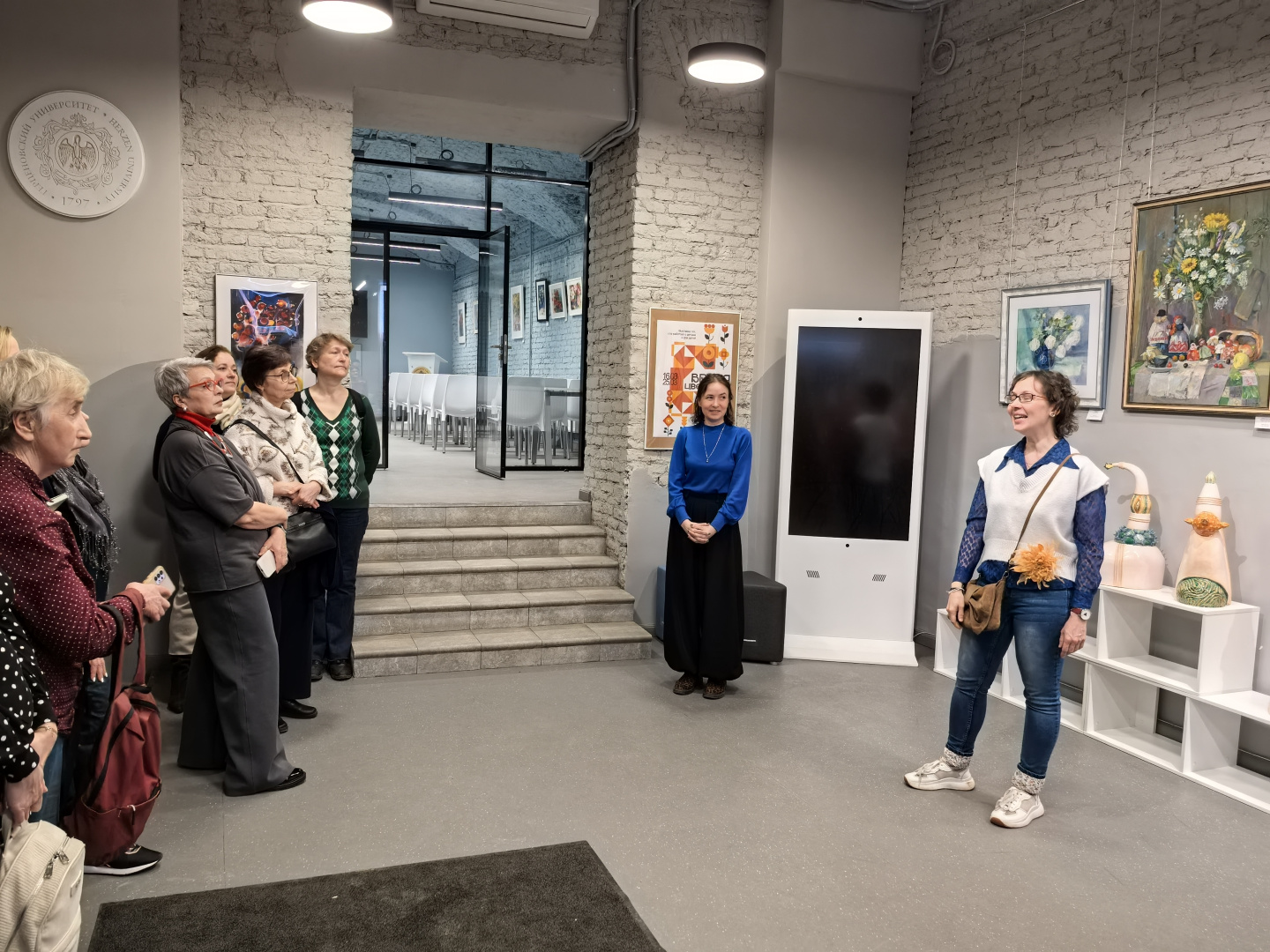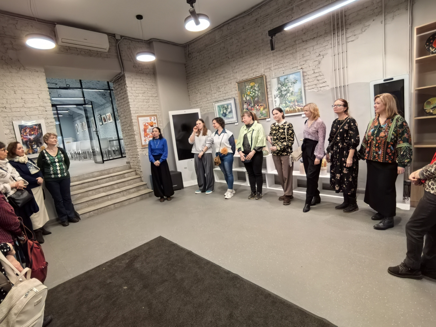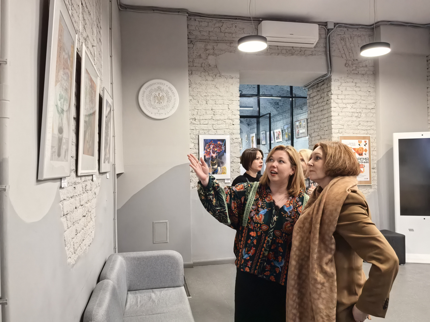 Одним из самых тёплых моментов открытия стало выступление участницы выставки, выпускницы института Лидии Гуровой. Она призналась, что для неё особенно важно снова оказаться в этих стенах — уже как художник.