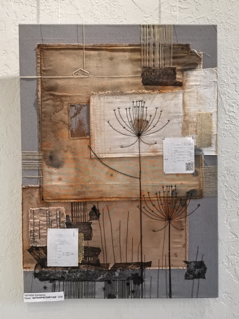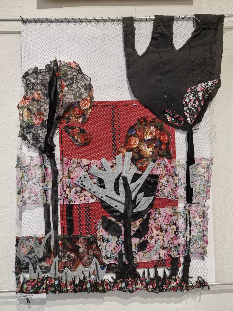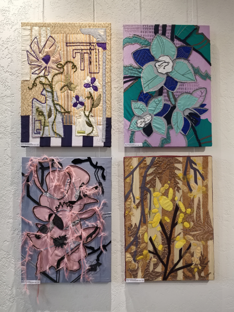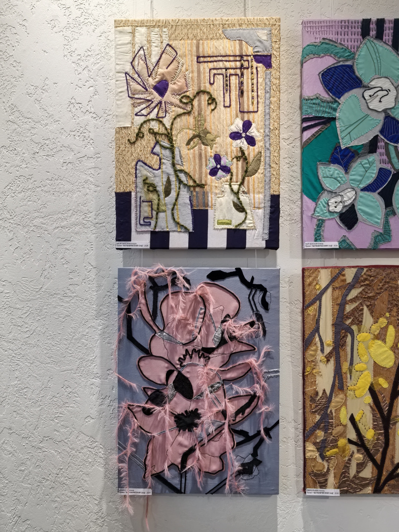 Подход, основанный на диалоге с материалом, открыл студентам новые грани творческого поиска. Особый интерес у первокурсников вызвало знакомство с коллажем — не только как с художественным приёмом, но и как с полноценным методом создания композиции и способом разработки эскиза. На выставке были представлены разнообразные техники: текстильный коллаж, ткачество, роспись по ткани, бумажный коллаж, а также работы, выполненные с использованием цифровой печати.
