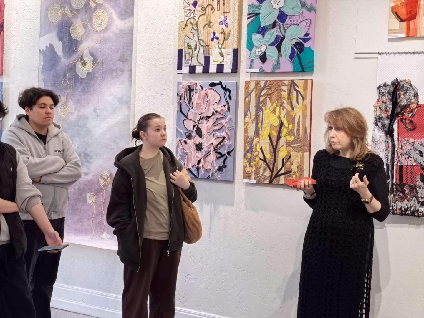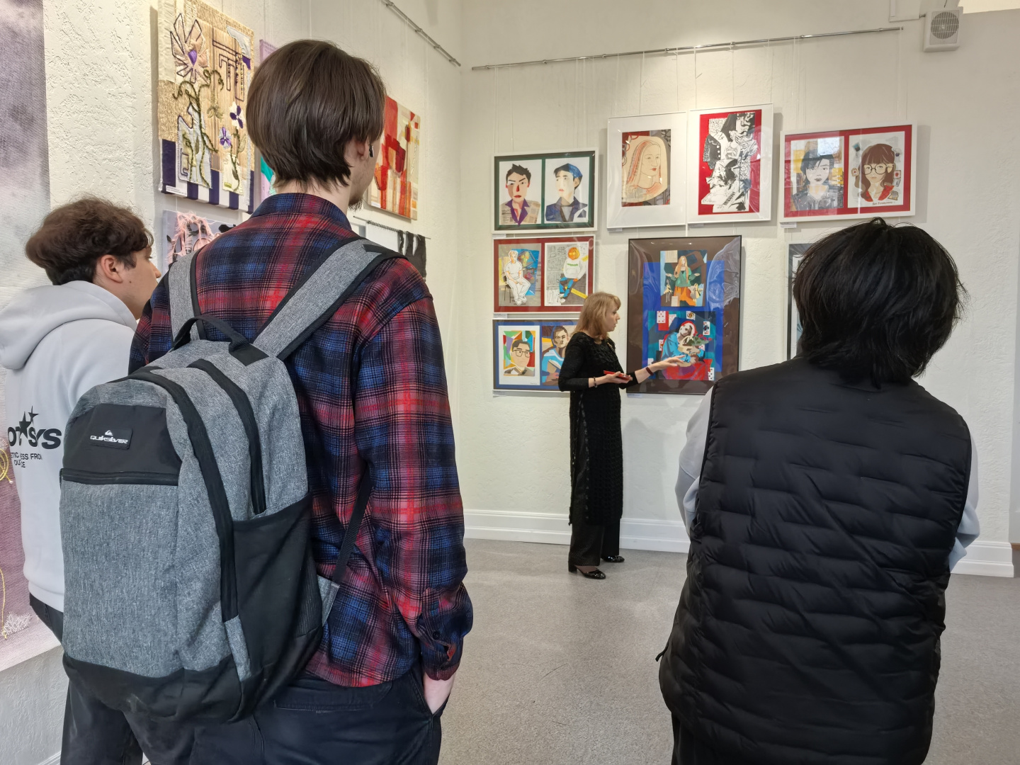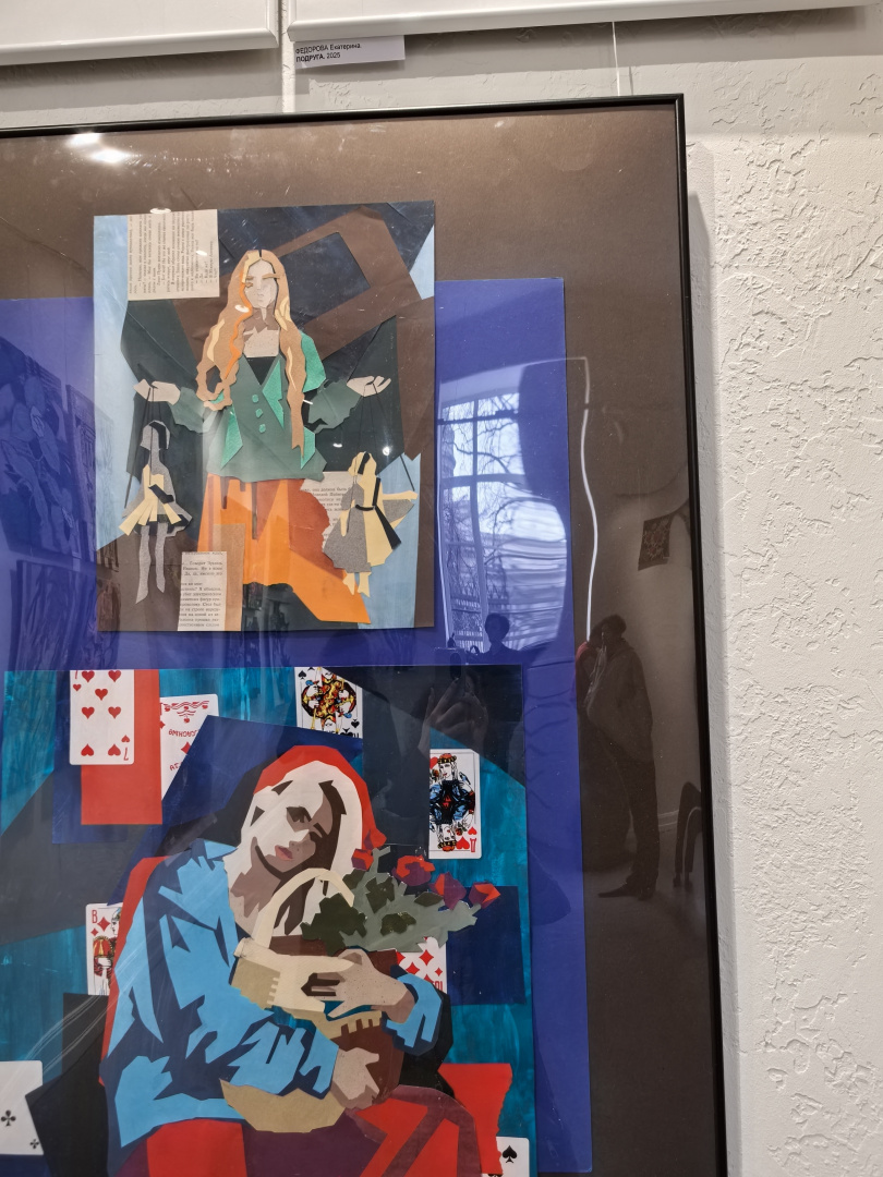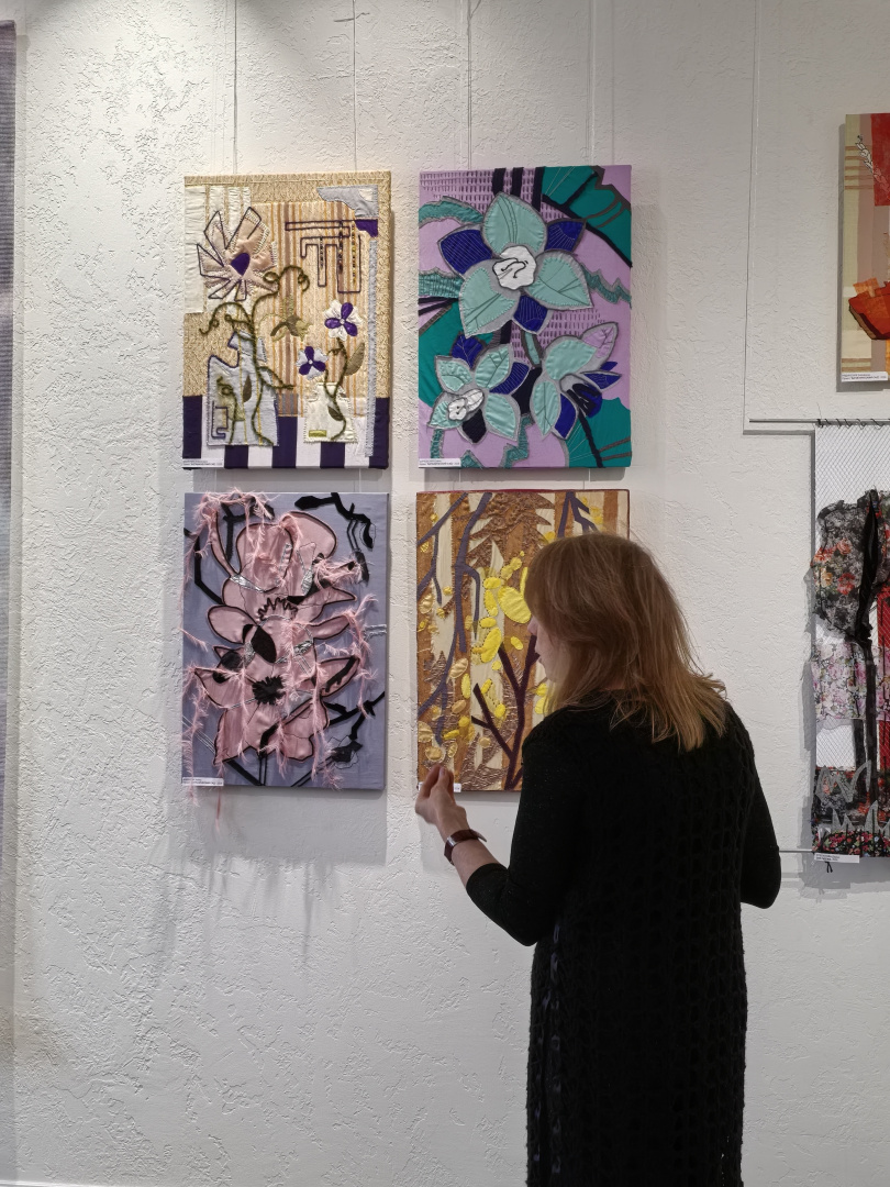 Подход, основанный на диалоге с материалом, открыл студентам новые грани творческого поиска. Особый интерес у первокурсников вызвало знакомство с коллажем — не только как с художественным приёмом, но и как с полноценным методом создания композиции и способом разработки эскиза. На выставке были представлены разнообразные техники: текстильный коллаж, ткачество, роспись по ткани, бумажный коллаж, а также работы, выполненные с использованием цифровой печати.