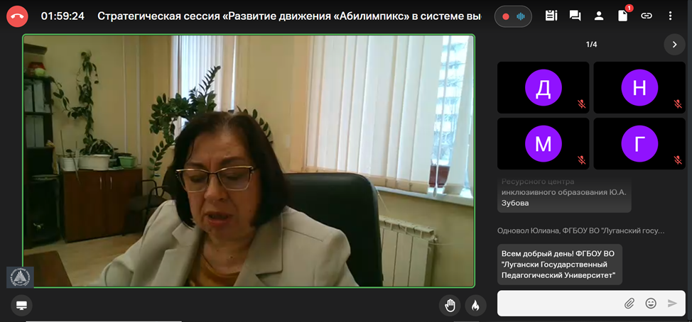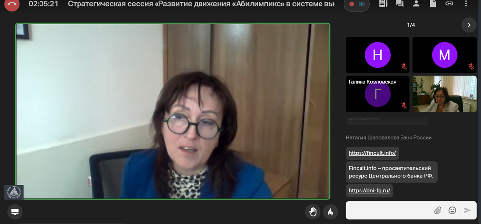 Руководитель Федерального методического центра по инклюзивному образованию Национального центра «Абилимпикс» Дина Рафиковна Макеева осветила вопросы участия студентов образовательных организаций высшего образования в движении «Абилимпикс-2025».