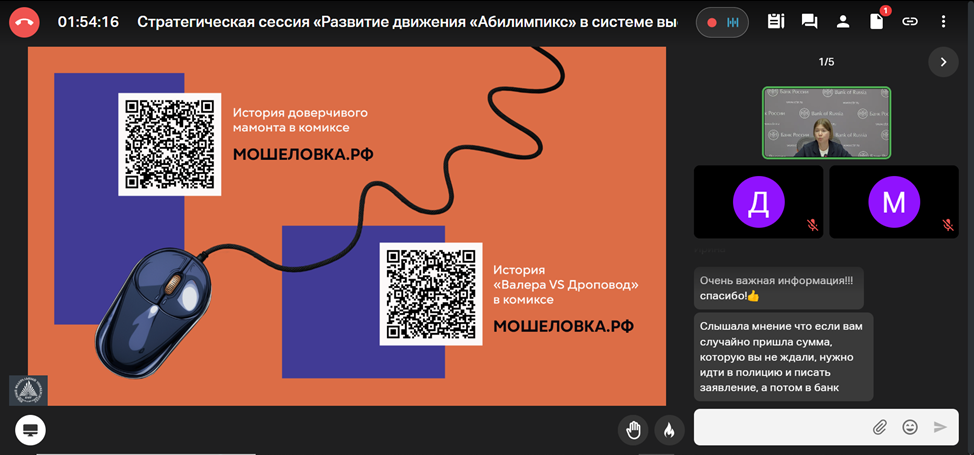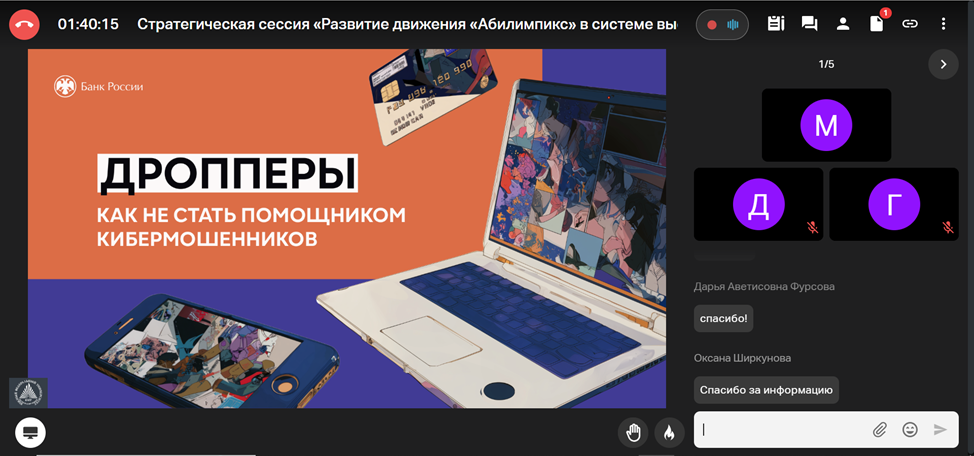Сообщение «Дропперы: как не стать помощником кибермошенников» представила участникам Стратегической сессии главный экономист экономического отдела Отделения по Ростовской области Южного главного управления Центрального банка Российской Федерации Наталия Константиновна Шаповалова.