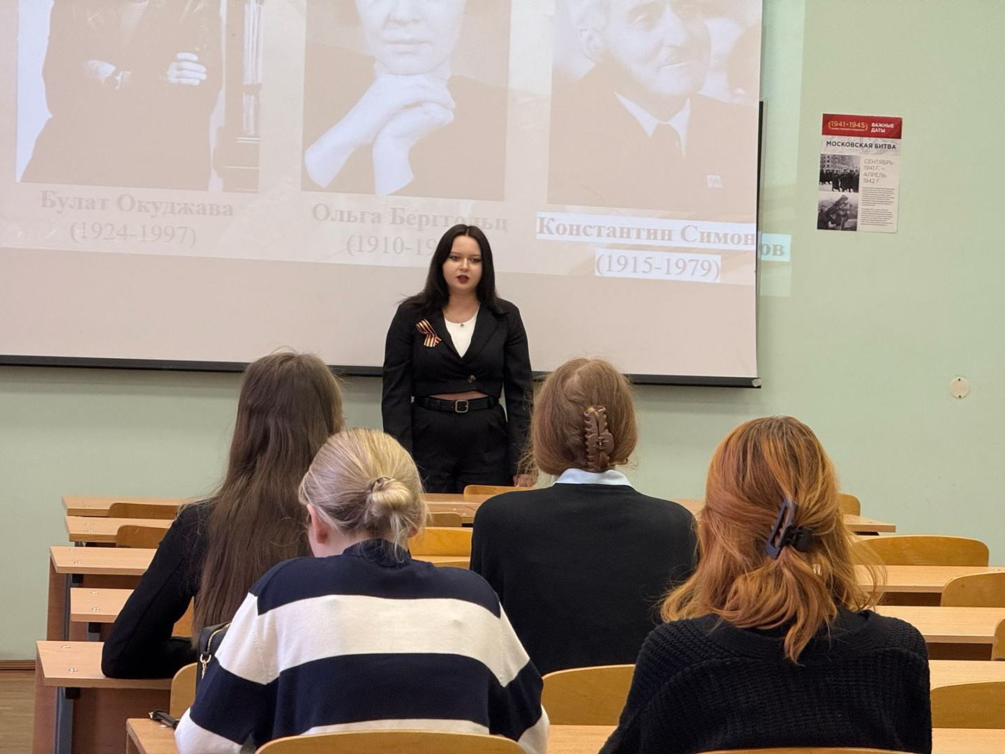 «Сегодня у нас проходит действительно значимое мероприятие. Всё началось с творческой акции по созданию текстов собственного сочинения, посвящённых 80-летию Победы. Акция завершается литературным вечером, где студенты читают лучшие произведения. Это событие важно для нас, потому что хранит память о героическом прошлом, напоминает о величайшей трагедии, которую мы не должны забывать, и создаёт связующую нить между поколениями, давая примеры мужества в трудные времена. Думаю, студенты всё это понимают и чувствуют, это отчетливо проявляется в их работах».