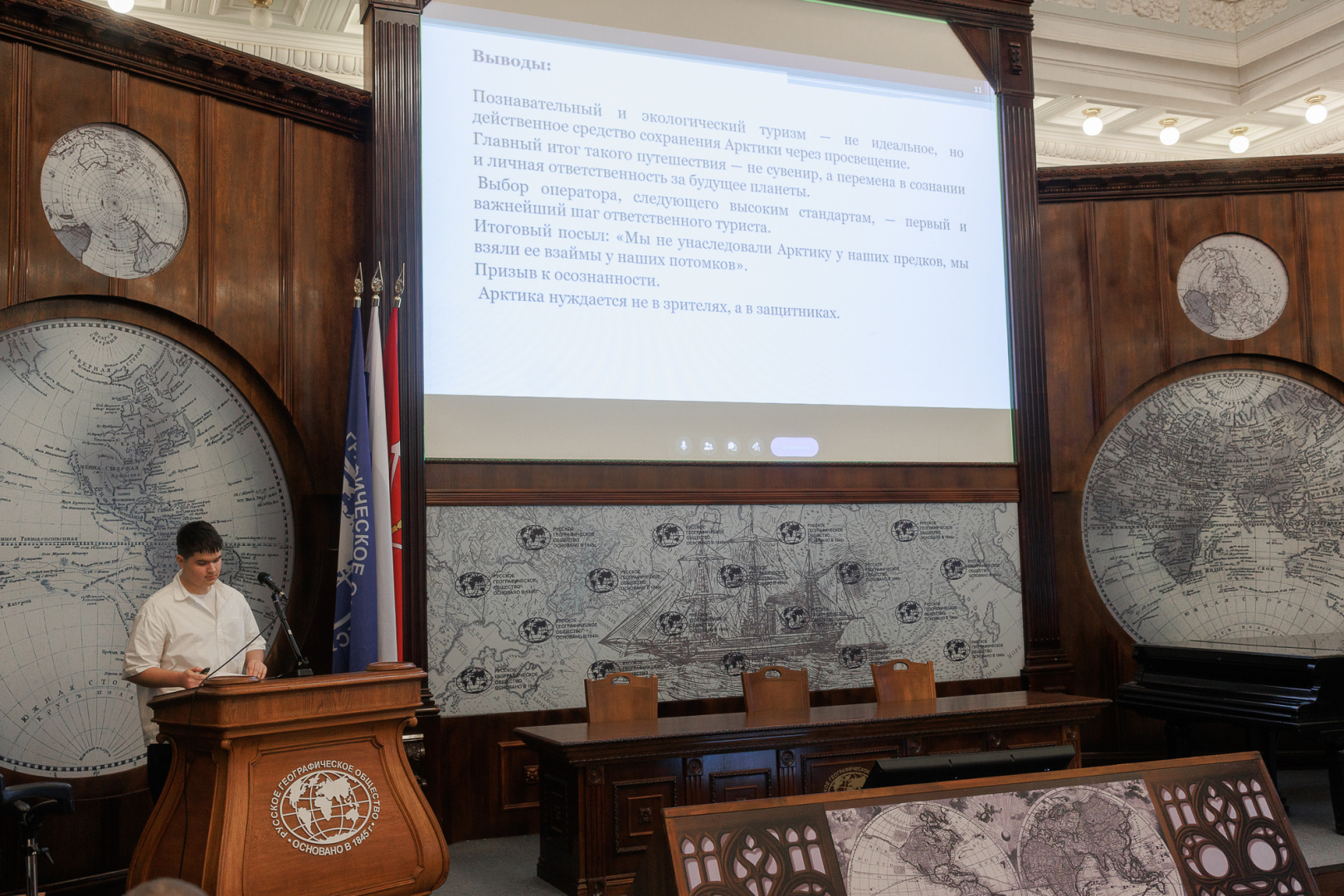 Конкурс, посвященный эколого-географическому, природно-ресурсному, социально-экономическому развитию Арктического региона, проводится ежегодно. В этом году было представлено более 100 работ из Санкт-Петербурга, Ленинградской и Мурманской областей, Республик Коми и Бурятия, Донецкой Народной Республики, Белгорода, Якутска, Нового Уренгоя, Новосибирска, Екатеринбурга, Нижнего Новгорода, Энгельса, Саратова, Норильска. На предварительном этапе наивысших оценок жюри удостоились 15 работ. Авторы вместе со своими наставниками были приглашены в штаб-квартиру Русского географического общества.