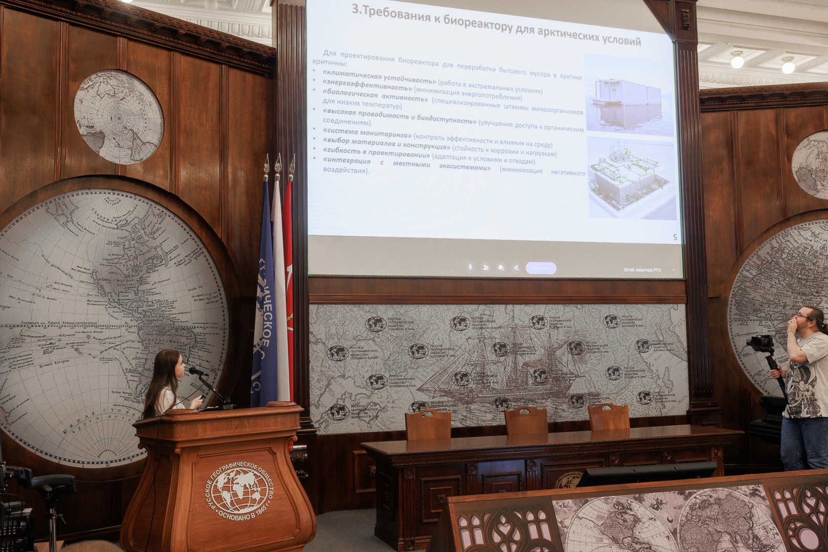 Работы учащихся отражают самые актуальные и значимые проблемы Арктического региона, большинство из них посвящены вопросам экологии. Ребята затронули такие темы, как адаптация народов Крайнего Севера к суровым климатическим условиям, борьба с кровососущими в условиях Арктики, выращивание овощей и пряновкусовых культур методом гидропоники, геология и экология, использование биореакторов для переработки мусора и организация площадок сбора твердых коммунальных отходов в Арктике. Гран-при РГО получил Константин Башилов за исследование «Постгляциальная палеосукцессия локального сообщества бентоса в Белом море». История Арктики была раскрыта в докладе Максима Тихонова «Спасители ледокола «Челюскин»: первые герои Советского Союза».