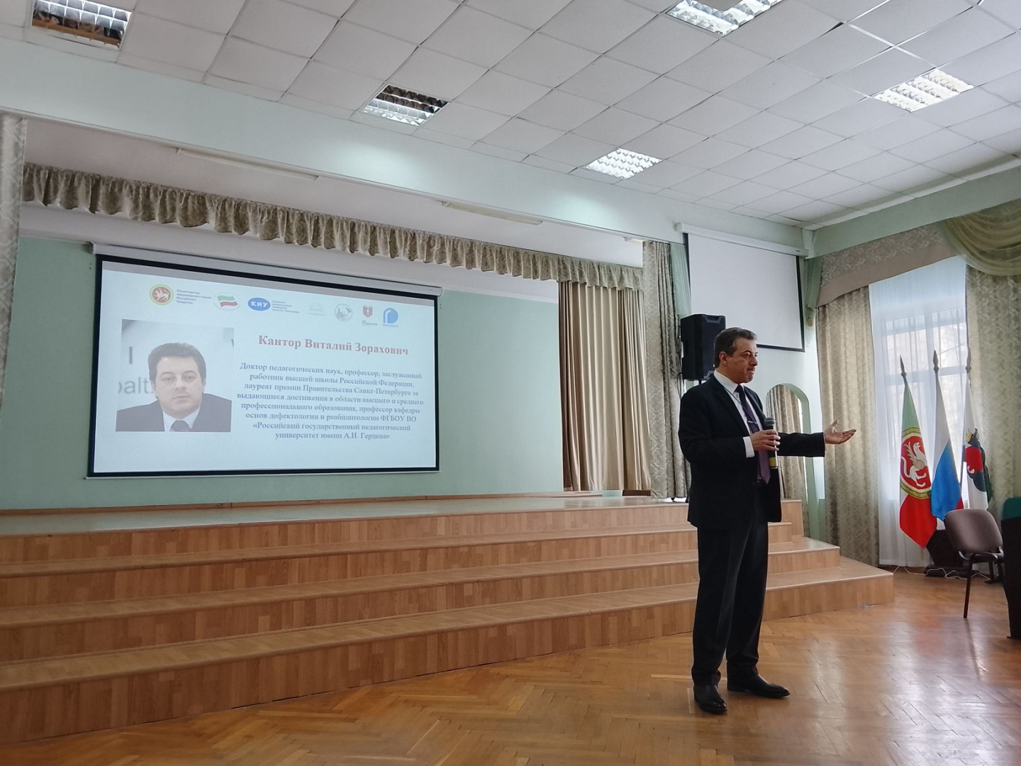 Профессор кафедры основ дефектологии и реабилитологии института дефектологического образования и реабилитации РГПУ им. А.И. Герцена Виталий Зорахович Кантор принял участие в XV Международном форуме «Преемственная система инклюзивного образования: технологии образовательной и социальной адаптации» в Казанском инновационном университете им. В. Г. Тимирясова и выступил на пленарном заседании с докладом «Инклюзивный контекст преемственности общего и профессионального образования: человеческий фактор в профориентации и психолого-педагогическом сопровождении обучающихся с ОВЗ и инвалидностью».