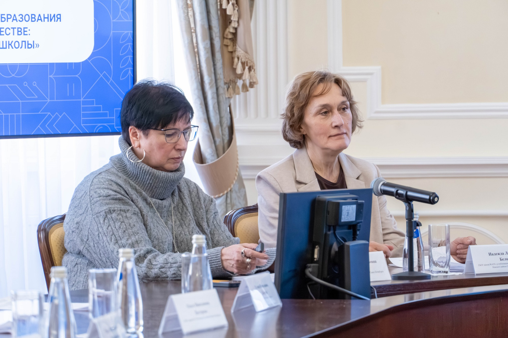 Заведующая кафедрой культуры мира и демократии Российского государственного гуманитарного университета Мария Гордеева рассказала об изменениях курса «Основы российской государственности», который сейчас ориентирован на трансляцию ценностей единства и диалога культур в системе непрерывного образования. Директор школы № 574 Невского района Санкт-Петербурга Марина Волкова обозначила, как школьные проекты влияют на последующее приобщение учащихся к вузовской науке. С комментариями по тематике круглого стола высказались заместитель директора по учебно-воспитательной работе школы № 639 с углубленным изучением иностранных языков Невского района Санкт-Петербурга Надежда Белоус, директор школы № 334 «Образовательный комплекс «Невская перспектива» Наталья Нагайченко.