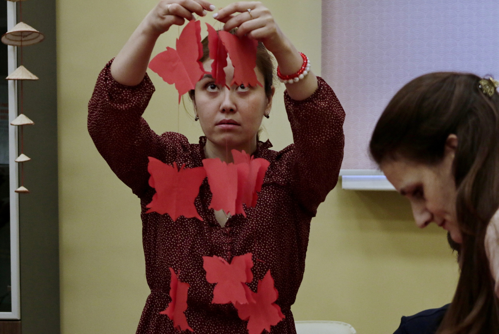 Творческое занятие провела преподаватель института востоковедения Элла Чан. Под ее руководством участники создавали традиционные вьетнамские украшения, которые являются неотъемлемым атрибутом главного праздника года во Вьетнаме. Атмосферу вьетнамского праздника помогло создать разучивание тематической песни. Гости освоили новые слова и прочувствовали мелодику вьетнамского языка.