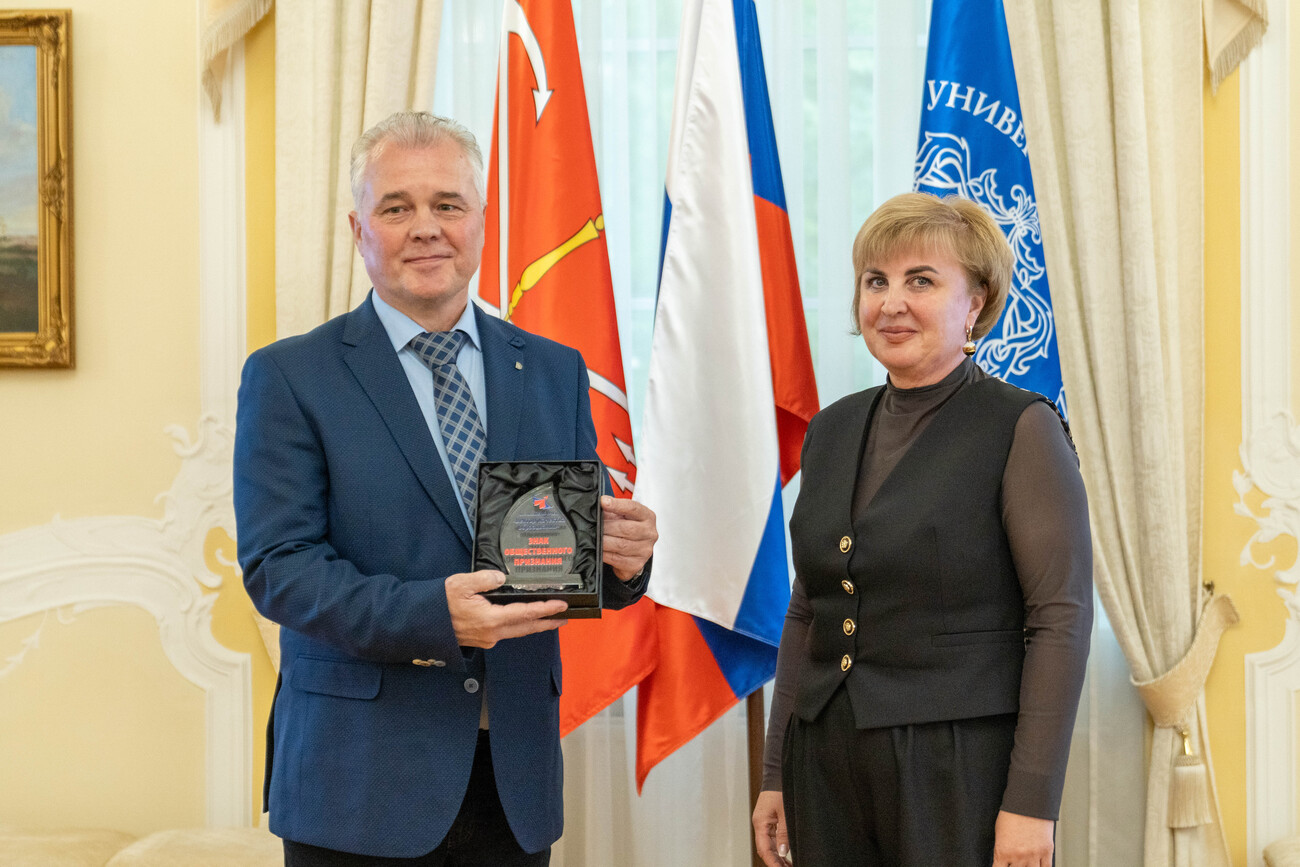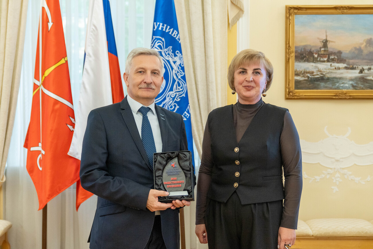 РГПУ им. А. И. Герцена и журнал «Управление качеством образования: теория и практика эффективного администрирования» являются основными организаторами проекта «Вектор качества образования». За большой вклад в его развитие Сергей Тарасов и Игорь Ткачев были отмечены «Знаком общественного признания». Награду вручила председатель общественного совета Пушкинского района Санкт-Петербурга, советник главы администрации Пушкинского района Евгения Воронина. Она выразила благодарность за поддержку проекта, за счет которой число участников и социальных партнеров растет с каждым годом.