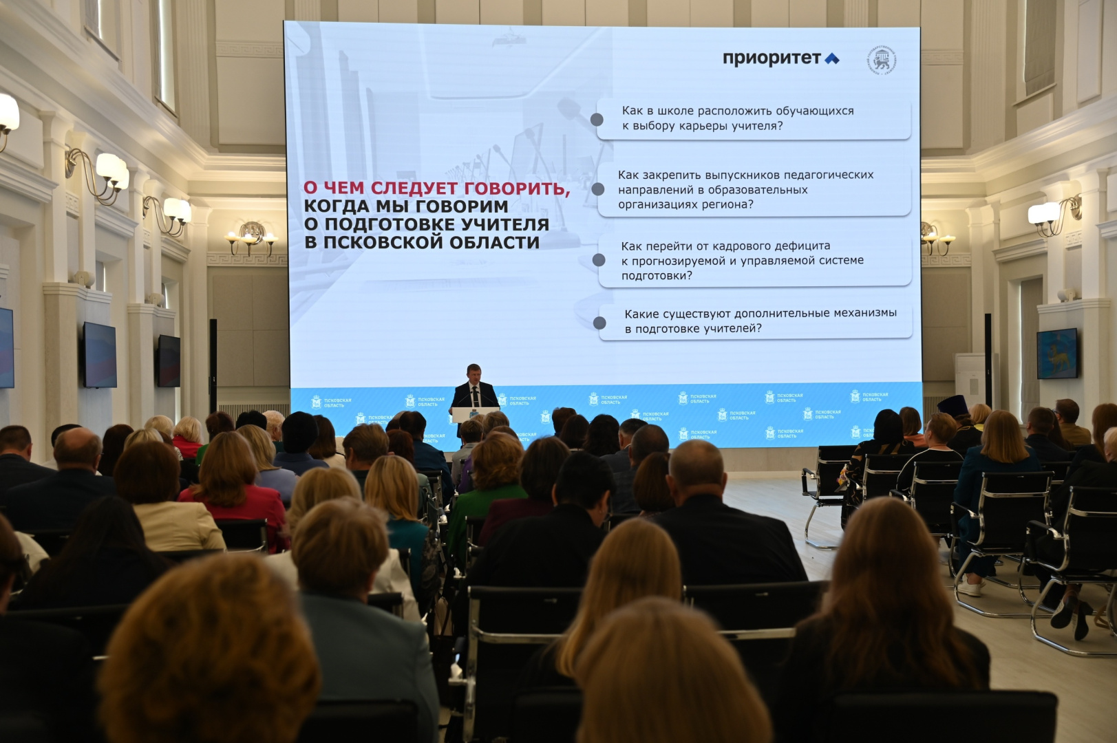 Августовские педагогические совещания ежегодно проходят во всех регионах страны при поддержке Минпросвещения России. В Псковской области августовский педсовет в этом году включил работу 12 тематических секций. Участники обсудили вопросы нормативно-правового регулирования и современные подходы к обучению, цифровизации образования, стратегии работы с молодежью, повышения эффективности системы воспитания и профессионального развития педагогов.