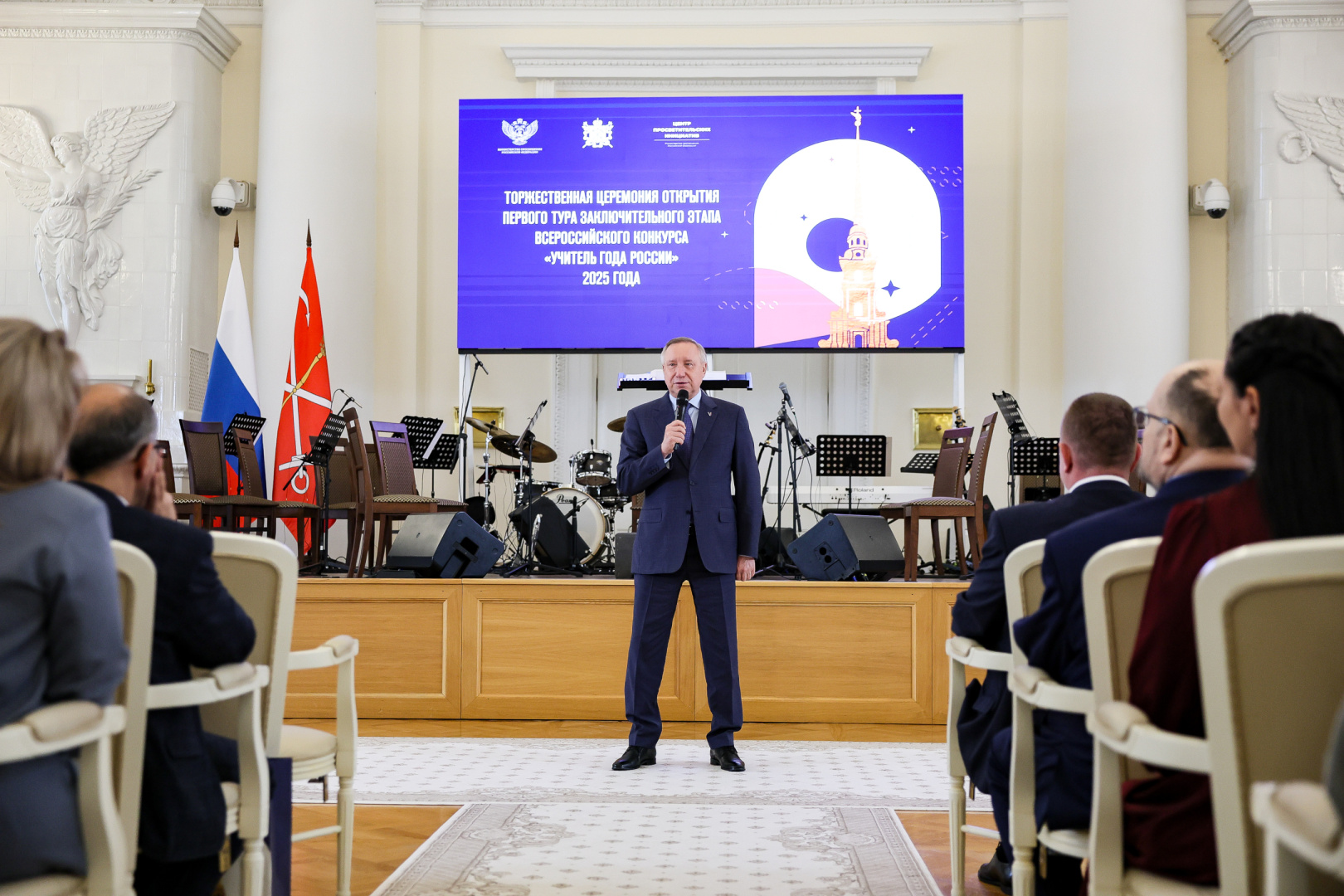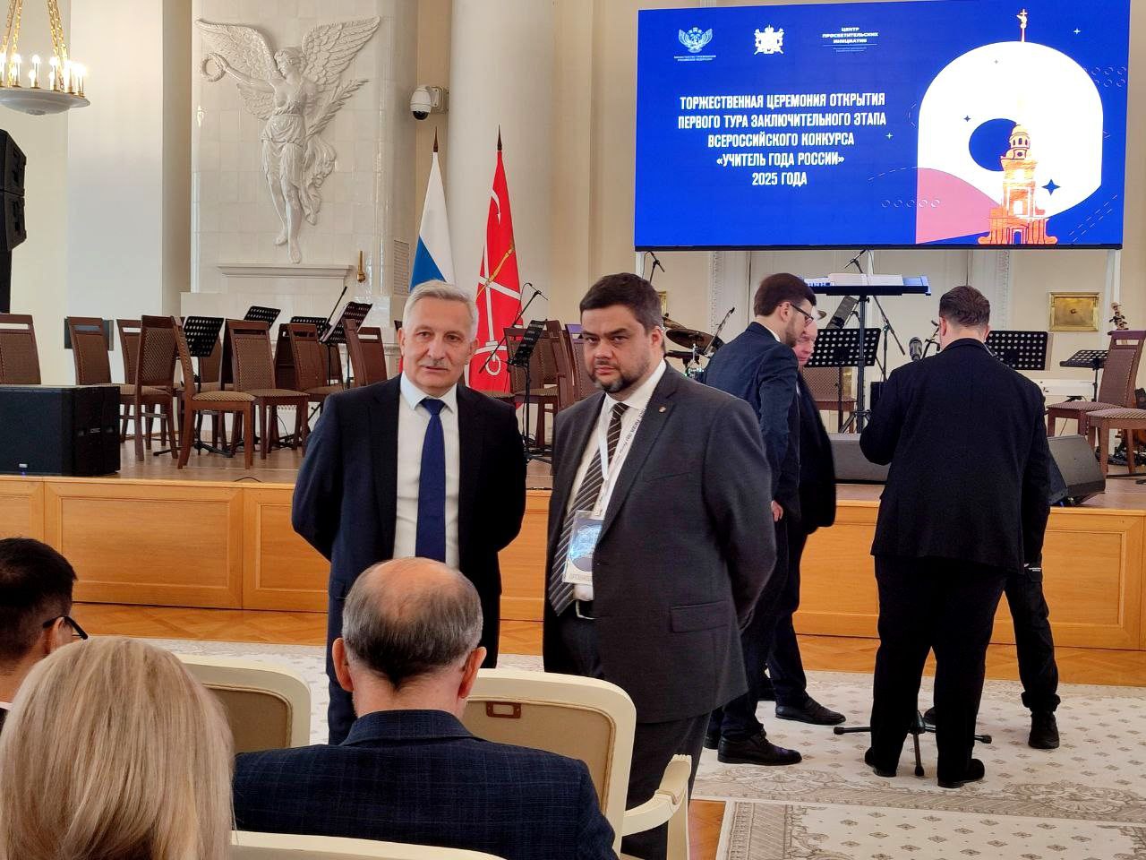 Торжественная церемония открытия заключительного этапа Всероссийского конкурса «Учитель года России» 2025 года прошла в Санкт-Петербурге. В ней приняли участие губернатор Александр Беглов, заместитель министра просвещения РФ Ирина Шварцман и другие почетные гости, в том числе ректор РГПУ им. А. И. Герцена Сергей Тарасов и начальник управления межрегионального сотрудничества в сфере образования Елена Спасская.