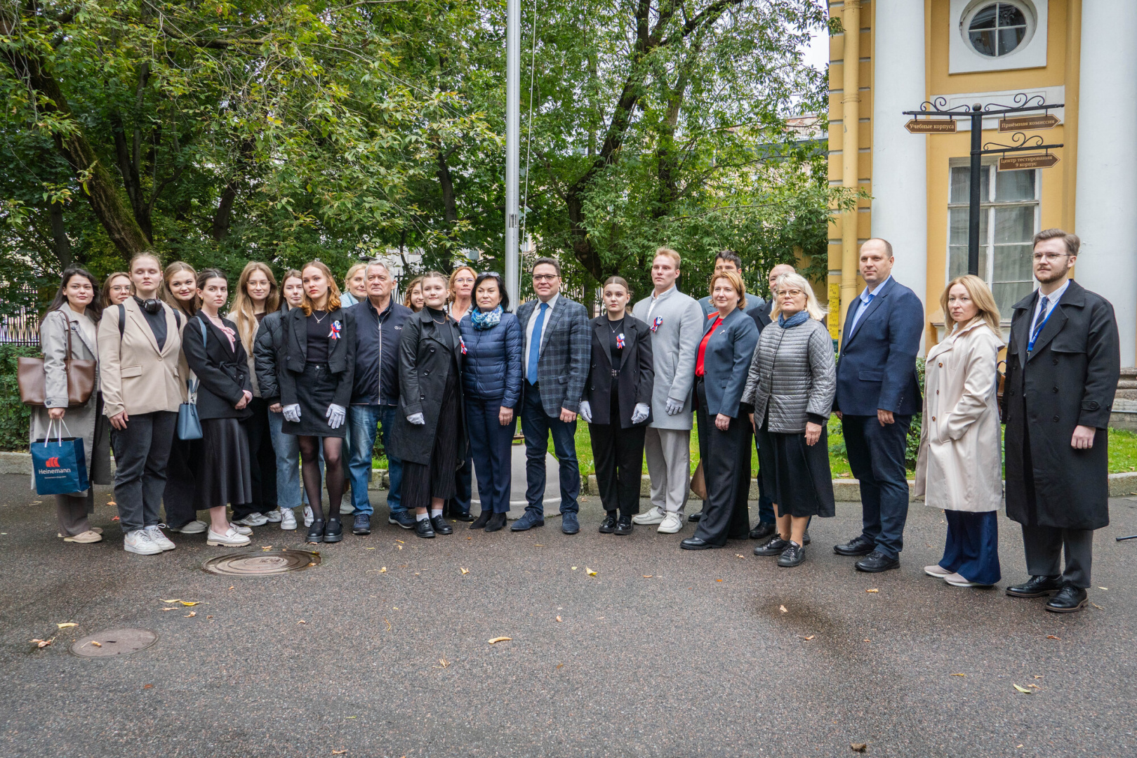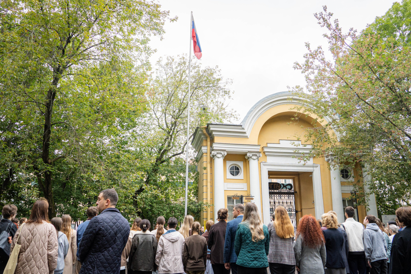Учебная неделя в Герценовском университете началась торжественной церемонией поднятия флага России, которая стала традиционной для студентов, преподавателей и сотрудников.