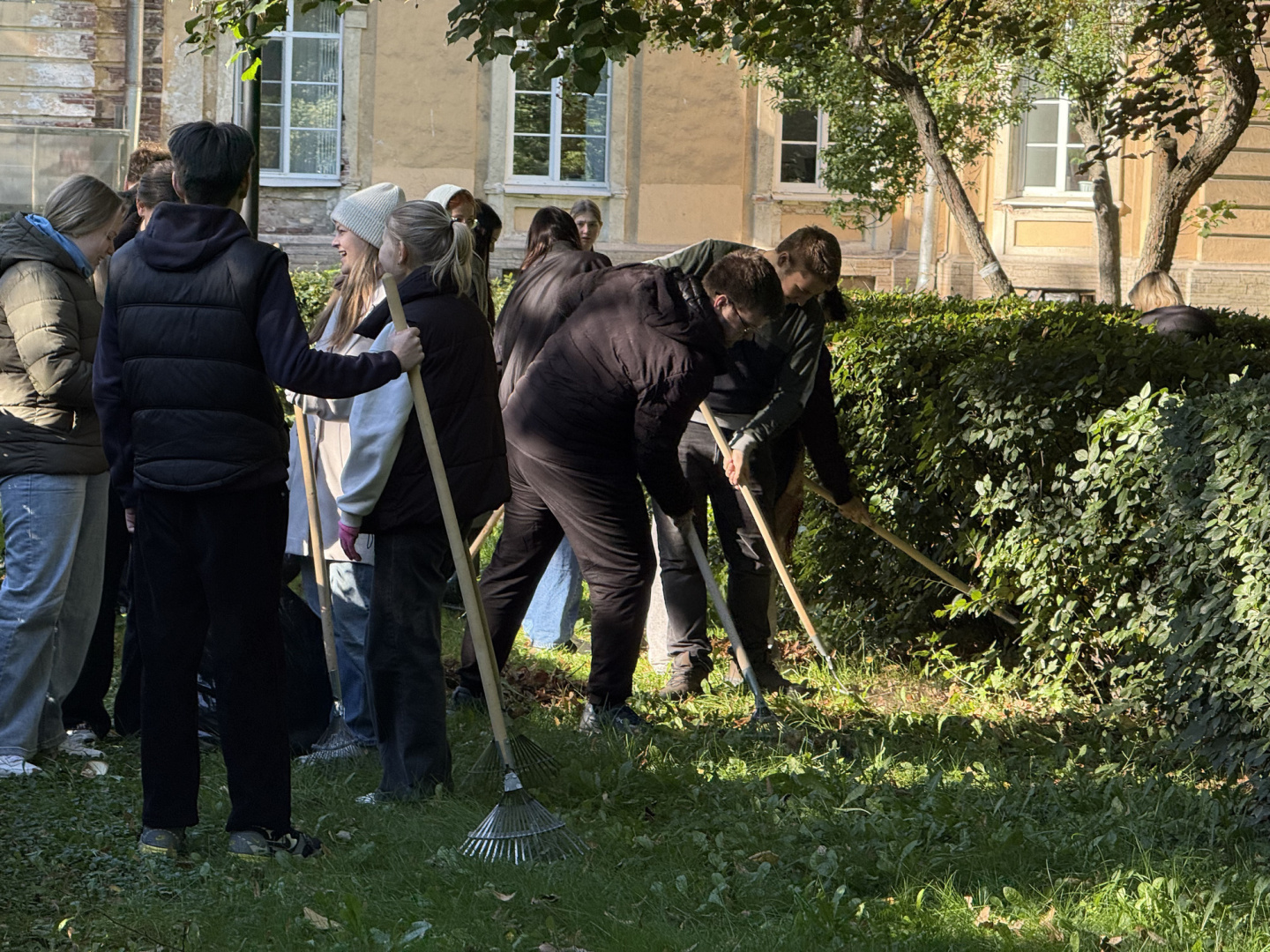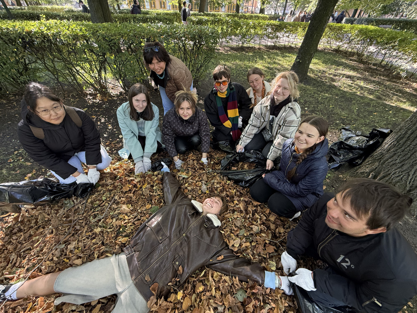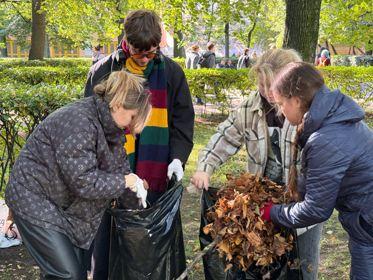 Герценовцы оперативно очистили территорию сада от опавшей листвы и собрали ее в пакеты для последующего вывоза. Необходимым инвентарем участников субботника обеспечило управление социально-бытового обеспечения и обслуживания. Чистая территория университета стала итогом общих усилий.