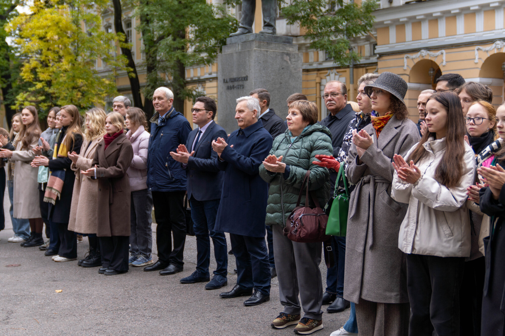 На площади перед главным корпусом РГПУ им. А. И. Герцена состоялась традиционная торжественная церемония поднятия российского флага. Участниками церемонии стали представители ректората, начальники управлений, руководители учебных подразделений, студенты и преподаватели.