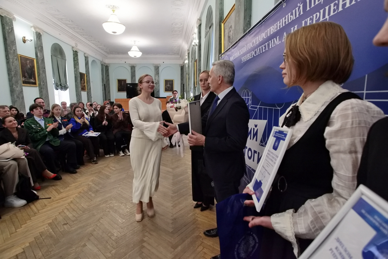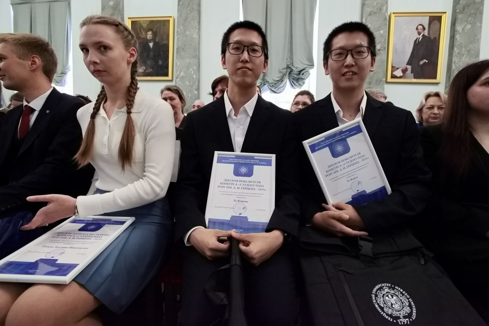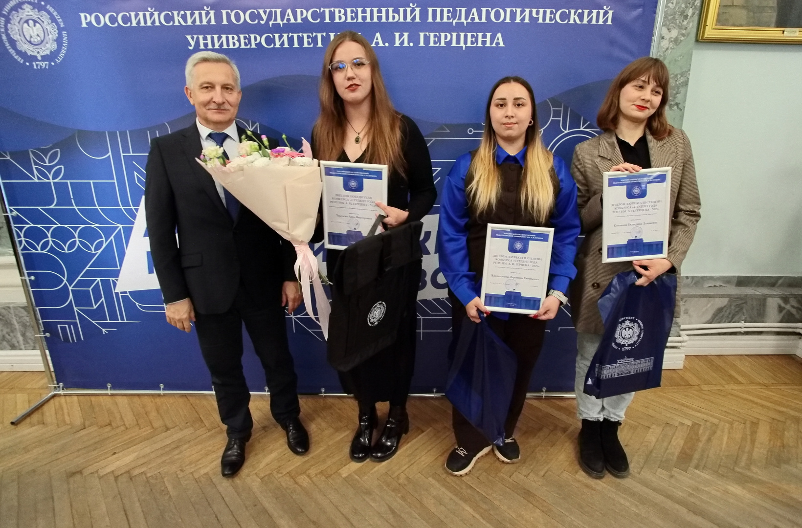 «Стремление к знаниям, энергия и искреннее желание менять мир вокруг себя к лучшему — вот те качества, которые я каждый день вижу в наших студентах. Ваши достижения — это не только ваша личная победа, но и гордость всего университета. Своим примером вы вдохновляете других ребят и вносите краски в студенческую жизнь. От всей души желаю вам не останавливаться на достигнутом. Пусть эта победа станет для вас лишь одной из многих ступеней на пути к большим целям. Продолжайте гореть своим делом, смело покоряйте новые высоты и помните, что впереди — удивительное будущее», — поздравил студентов ректор РГПУ им. А. И. Герцена Сергей Тарасов.