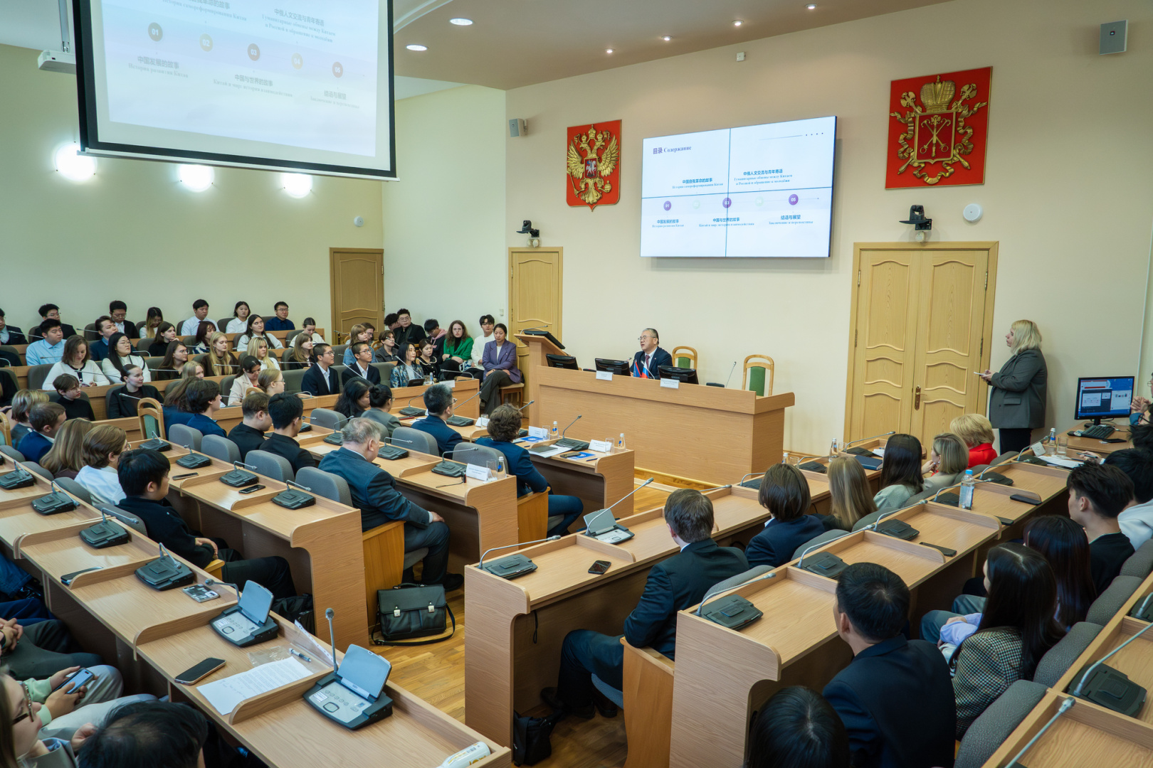 После официальной встречи Генеральный консул провел открытую лекцию для российских и китайских студентов вуза. К аудитории обратилась проректор по общим вопросам РГПУ им. А. И. Герцена Татьяна Рыборецкая: «Мы высоко ценим проявленный интерес к нашему университету со стороны Генерального консульства Китая. Подобные мероприятия имеют огромное значение для укрепления дружеских и профессиональных связей между нашими странами, а для студентов это уникальная возможность получить актуальную и интересную информацию о стране непосредственно от ее официального представителя».