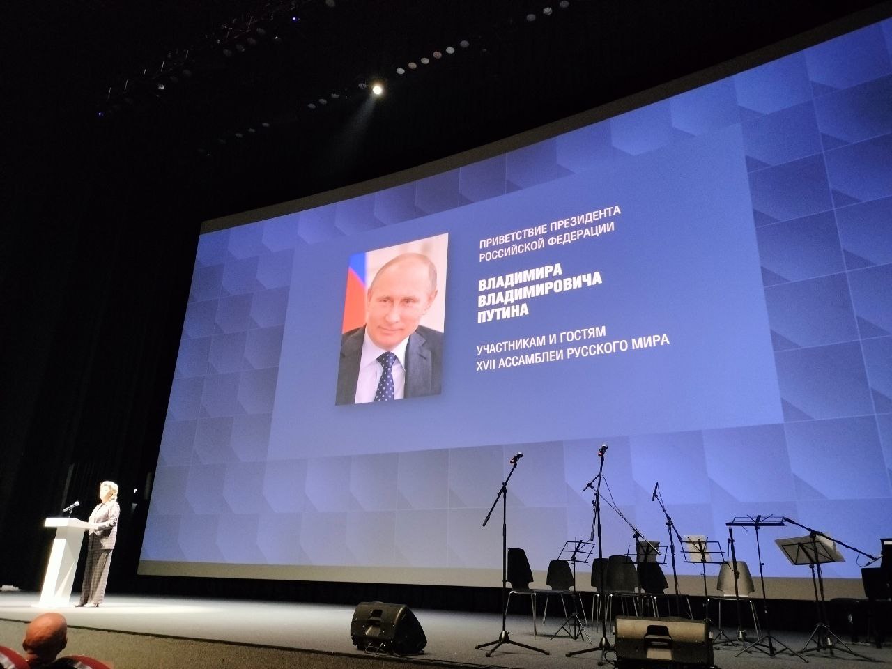 Председатель наблюдательного совета фонда «Русский мир», советник Президента РФ, председатель Совета при Президенте РФ по реализации государственной политики в сфере поддержки русского языка Елена Ямпольская зачитала приветствие Владимира Путина, в котором он обозначил поддержку и продвижение русского языка как приоритетную задачу и подчеркнул важность гуманитарного сотрудничества для продвижения равноправного диалога. С видеоприветствием к участникам обратился председатель попечительского совета фонда «Русский мир», министр иностранных дел РФ Сергей Лавров. В адрес ассамблеи поступили приветствия от председателя Правительства РФ Михаила Мишустина, председателя Совета Федерации Валентины Матвиенко, от Патриарха Московского и Всея Руси Кирилла.