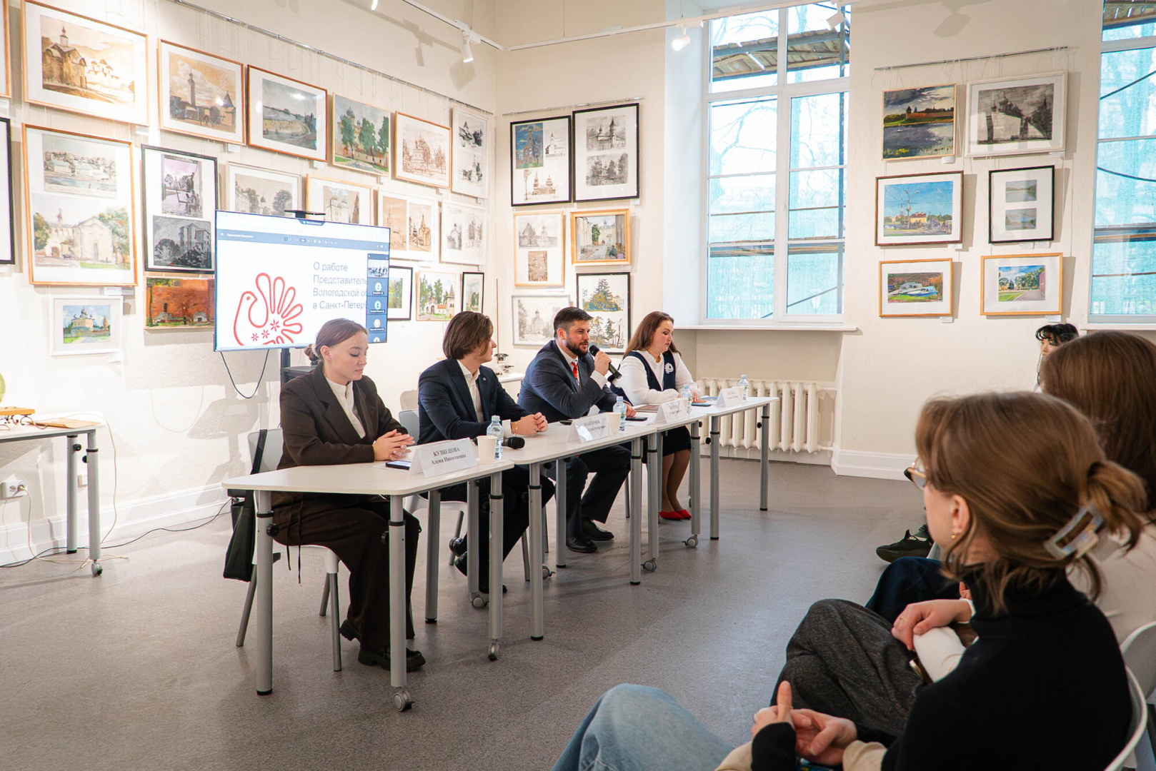 Юрий Лилеин также встретился с вологодскими студентами вуза в пространстве Открытого кампуса. В беседе участвовали руководитель Молодежного актива представительства Вологодской области в Санкт-Петербурге Ростислав Максимов и выпускницы Герценовского университета — директор Архангельской основной общеобразовательной школы Татьяна Багулина и заместитель директора по воспитательной работе начальной общеобразовательной школы № 43 Череповца Алена Кузнецова. Они поделились успешным опытом построения карьеры в регионах, рассказали о действующих мерах поддержки молодых специалистов, включая программу «Земский учитель» и компенсацию расходов на жилье.