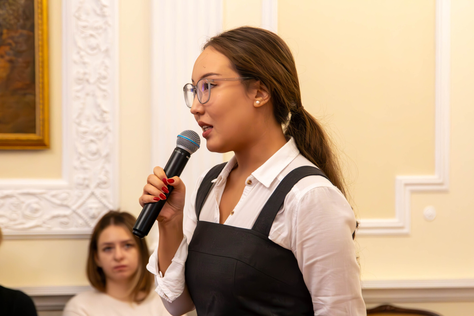 На вопросы учащихся ответила Генеральный консул Кыргызстана в Санкт-Петербурге Алтынай Сакеева. Она отметила, что диппредставительство открылось два года назад, и сейчас идет работа по созданию при нем студенческого штаба.