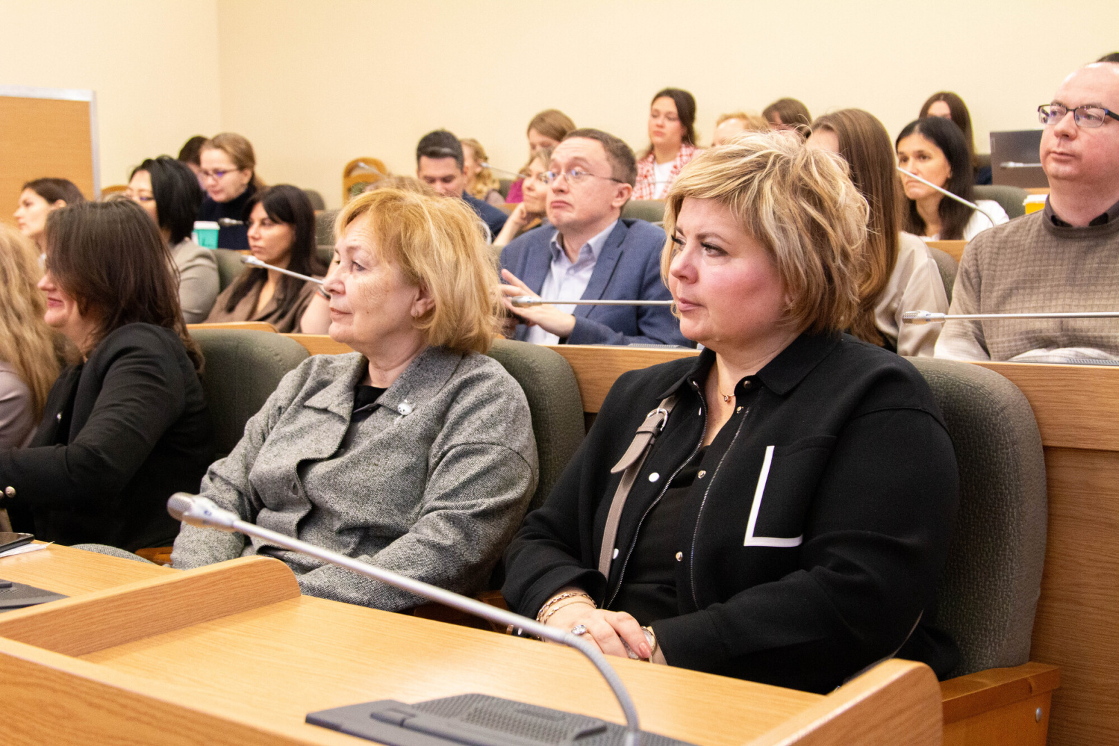 На пленарном заседании участники обсудили взаимосвязь теории и практики обучения иностранным языкам, перспективы профессионального развития педагогов в области искусственного интеллекта и преодоление психолого-педагогических рисков использования ИИ. Метаязык современной методической науки стал ключевым в обсуждении.