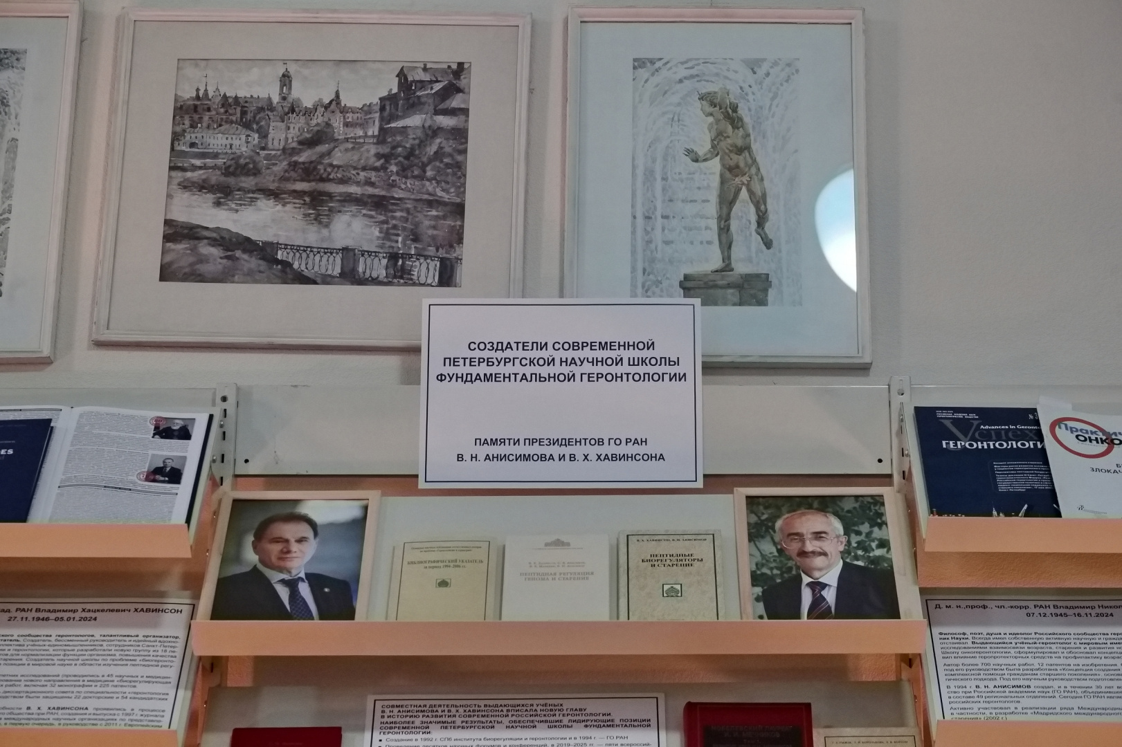 В фундаментальной библиотеке имени императрицы Марии Федоровны РГПУ им. А. И. Герцена открылась выставка изданий из собрания фонда геронтологических исследований. Она посвящена памяти президентов Геронтологического общества Российской академии наук, выдающихся петербургских ученых Владимира Анисимова и Владимира Хавинсона.