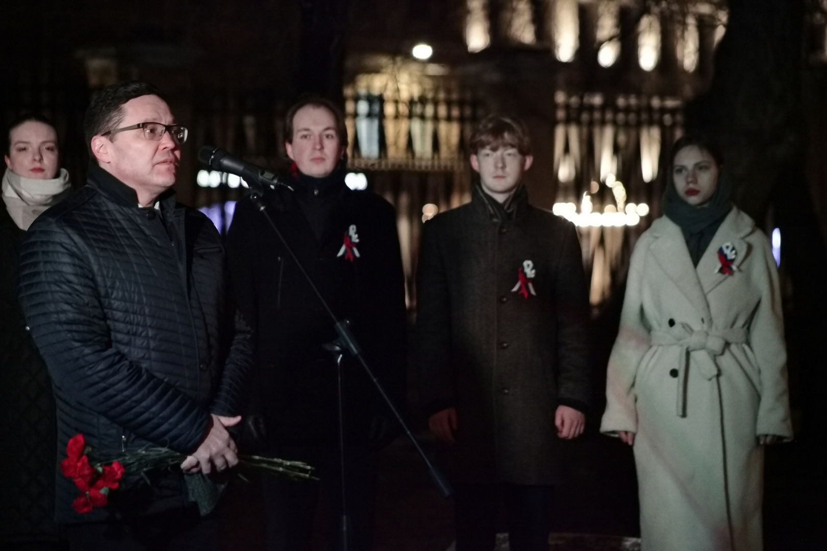 К участникам церемонии обратился проректор по воспитательной деятельности и молодежной политике Герценовского университета Роман Соколов: «Сегодняшняя церемония — дань памяти студентам, преподавателям и сотрудникам Герценовского университета, павшим в сражениях Великой Отечественной войны и сохранившим для нас культурное и научное наследие университета в блокадном Ленинграде. История вуза неразрывно связана с тем трагическим периодом в истории нашего Отечества, и поэтому сохранение исторической памяти — долг каждого из нас».