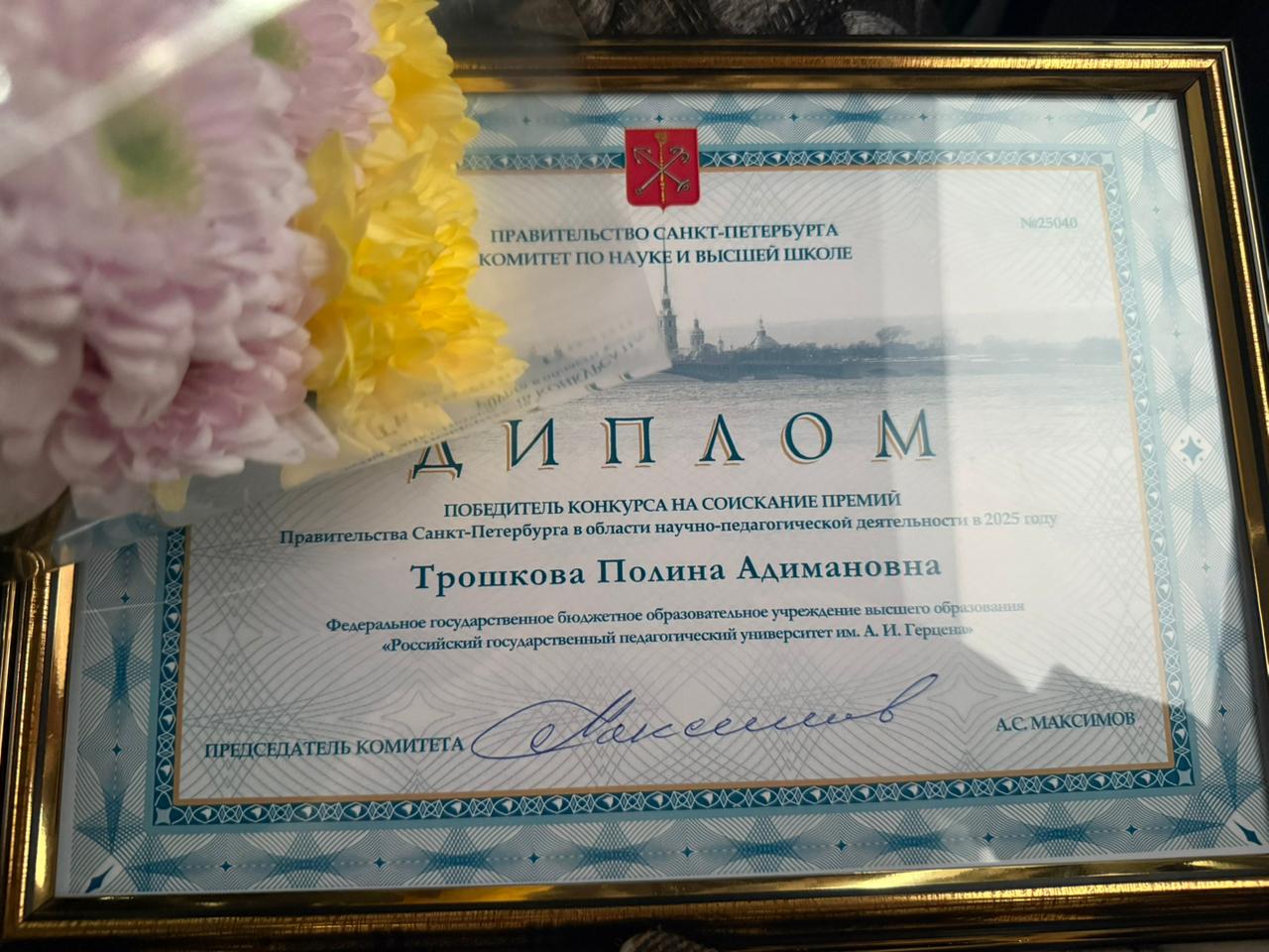Представители РГПУ им. А. И. Герцена удостоены премий Правительства Санкт-Петербурга в области научно-педагогической деятельности 2025 года. Аспирант института детства Полина Трошкова получила премию в номинации «Гуманитарные и социально-экономические науки». Доцент кафедры физической географии и природопользования факультета географии Юрий Кублицкий одержал победу в номинации «Естественные и математические науки» в категории для кандидатов наук.