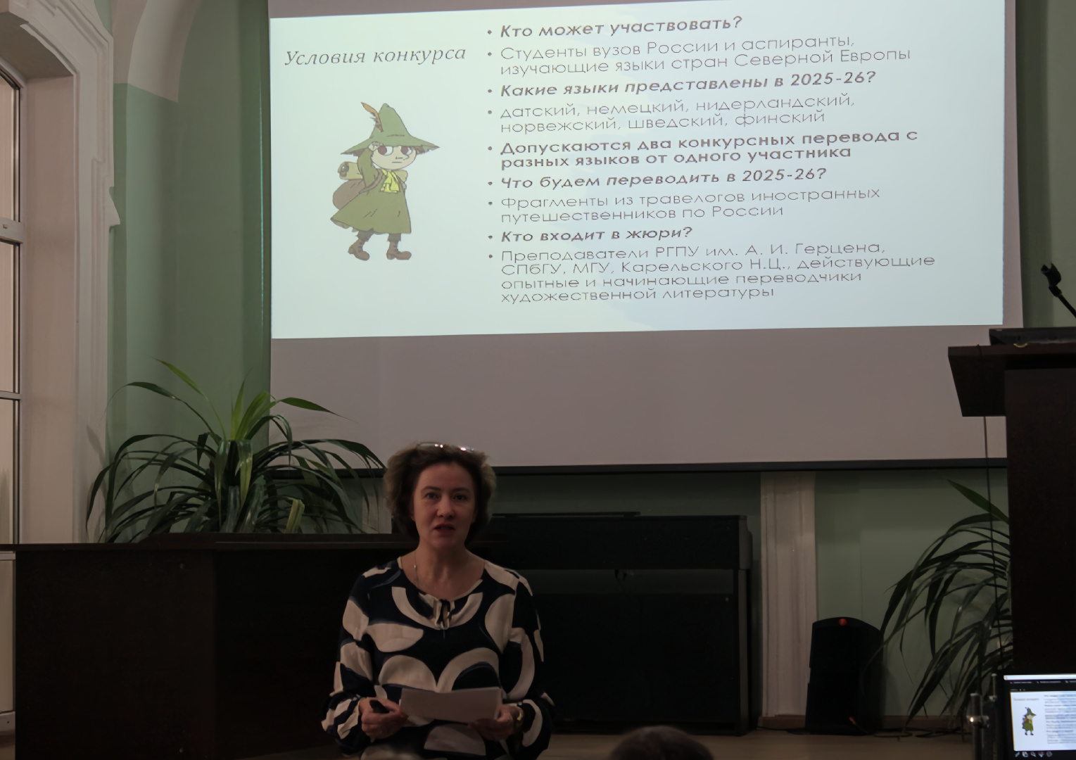 В рамках открытия конкурса для участников организовали серию экспертных выступлений о практических аспектах перевода. Переводчик-практик Елена Краснова разобрала сложности передачи датских реалий на русский язык. Ксения Самойлова рассказала о культурной репрезентации в жанре травелога, Полина Лисовская (СПбГУ) представила исторический контекст через фигуры шведских путешественников в России.