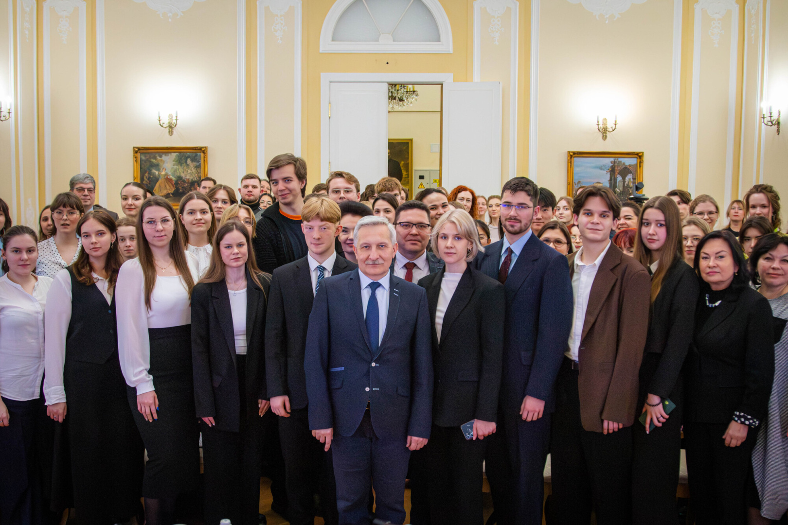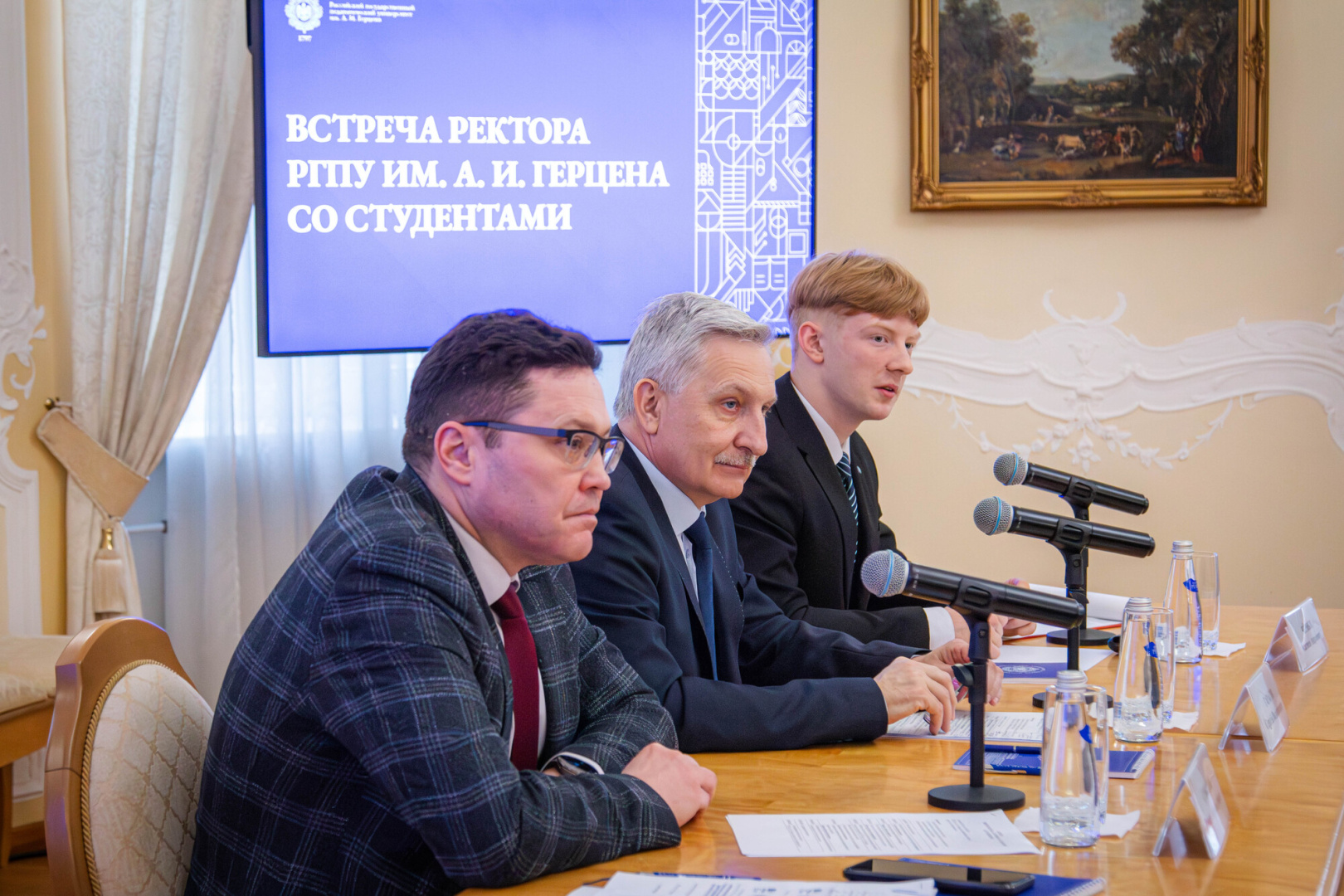 В РГПУ им. А. И. Герцена состоялась традиционная встреча со студенческим активом ректора Сергея Тарасова в канун Дня российского студенчества. В формате обмена мнениями были высказаны идеи и инициативы, касающиеся проведения студенческих мероприятий, выборной системы в Совет обучающихся и взаимодействия студенческого актива с руководством вуза.