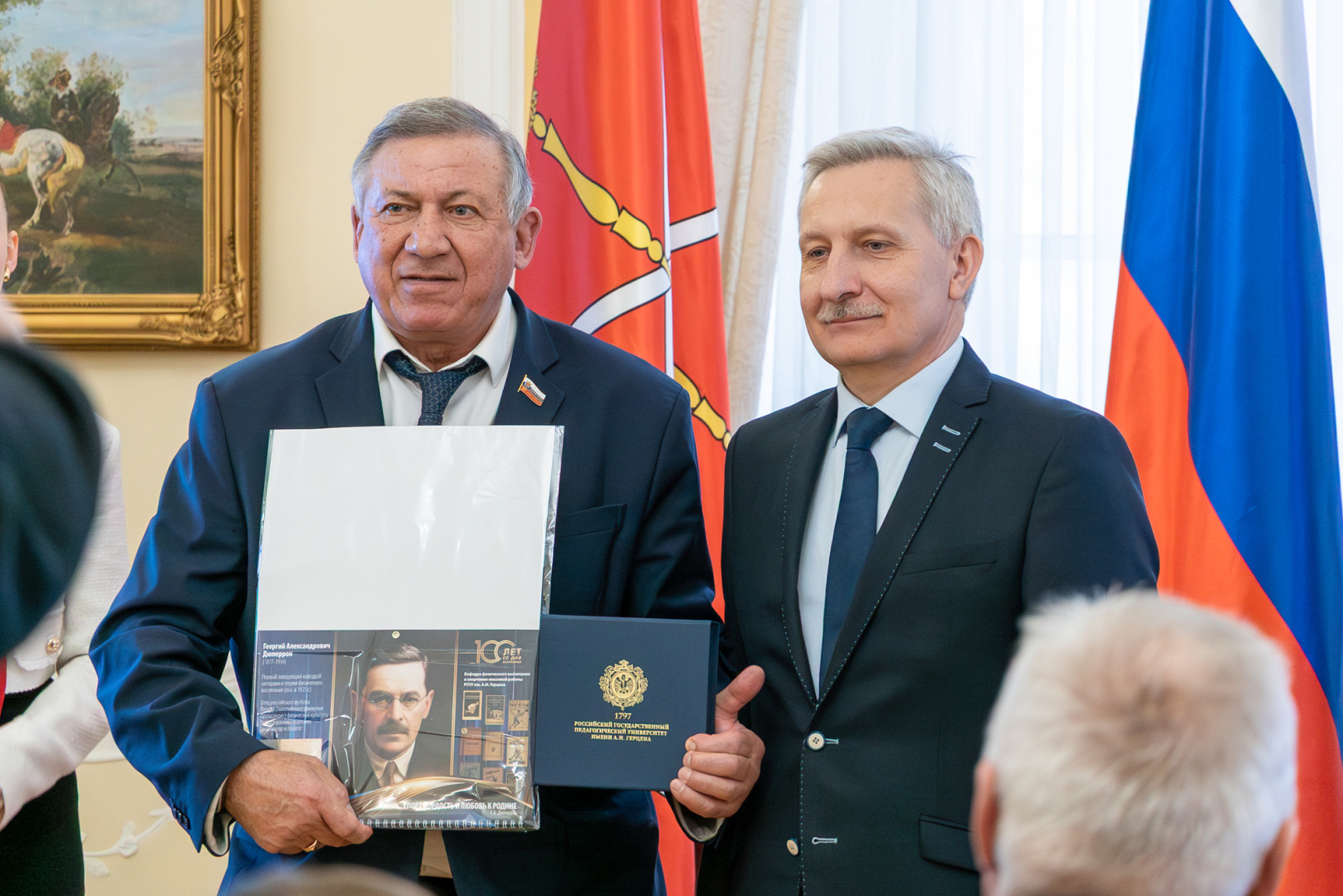 К 100-летнему юбилею кафедры физического воспитания и спортивно-массовой работы института физической культуры и спорта в Герценовском университете вручили юбилейные медали Георгия Александровича Дюперрона — основоположника российского футбола и олимпийского движения, первого заведующего кафедрой.