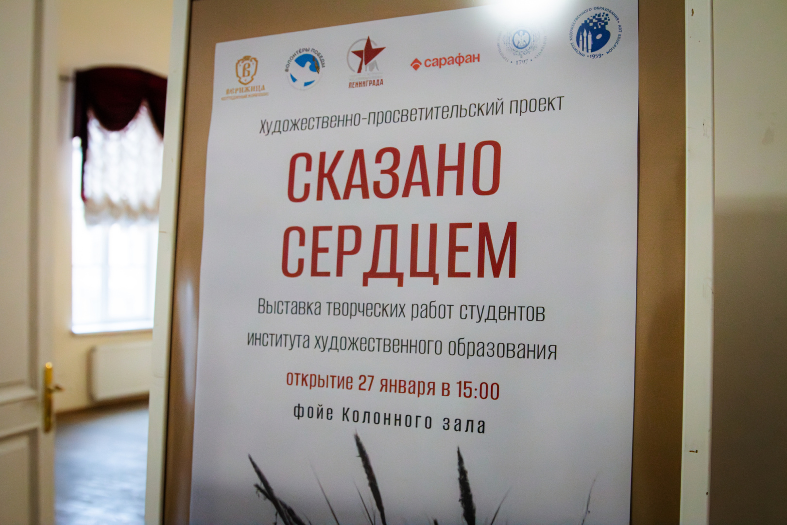 В Герценовском университете торжественно открылась выставка «Сказано сердцем», приуроченная к празднованию 82-й годовщины полного освобождения Ленинграда от фашистской блокады. Студенты института художественного образования создали серию работ, основой для которых стали 12 подлинных историй жителей блокадного города, записанных «Волонтерами Победы». Проект реализован в партнерстве вуза с Государственным мемориальным музеем обороны и блокады Ленинграда.