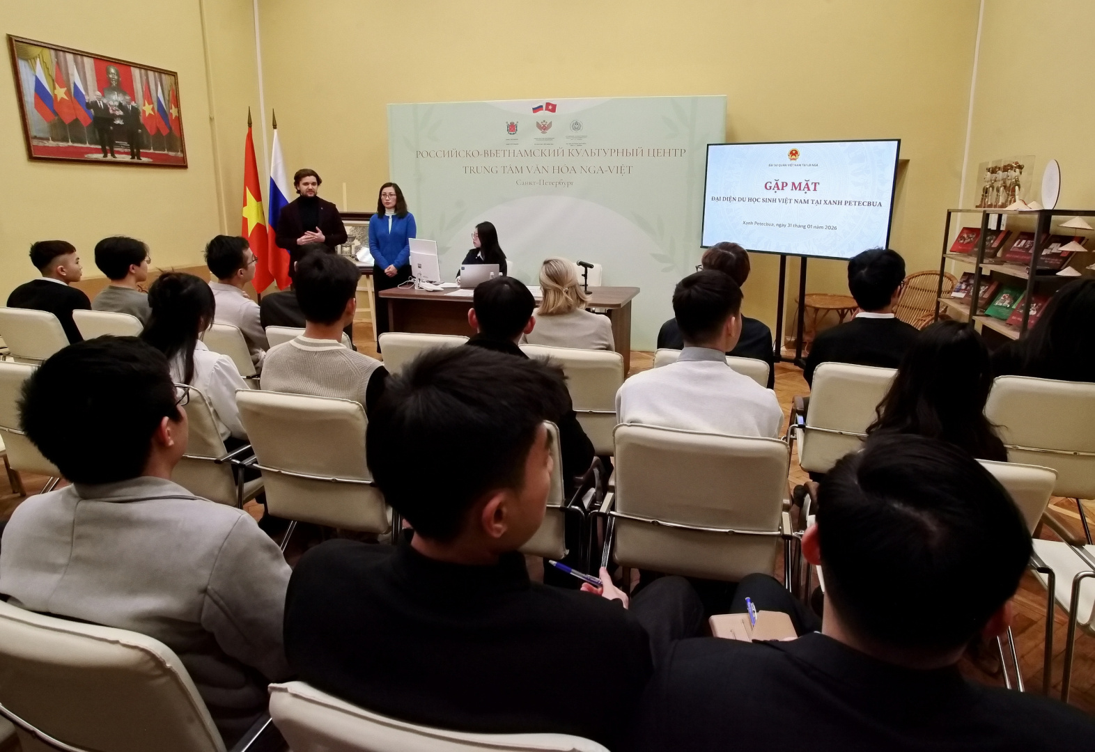 В Российско-Вьетнамском культурном центре РГПУ им. А. И. Герцена прошла встреча первого секретаря Посольства Вьетнама в России, представителя Министерства образования и подготовки кадров Вьетнама в РФ Май Нгуен Тует Хоа со студентами-вьетнамцами вузов Санкт-Петербурга. Событие стало открывающим мероприятием перекрестного Года науки и образования двух стран.