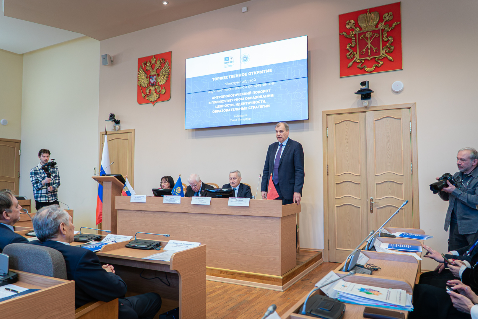 Директор Департамента по многостороннему гуманитарному сотрудничеству и культурным связям МИД России, ответственный секретарь Комиссии РФ по делам ЮНЕСКО Елена Галактионова в своем приветствии отметила роль ЮНЕСКО и, в частности, кафедр в решении проблематики поликультурного образования. Как отметила в своем приветствии заместитель Министра просвещения РФ Ольга Колударова, Герценовский университет имеет 30-летний опыт плодотворного сотрудничества с ЮНЕСКО, что является свидетельством признания высокого профессионализма российских педагогов и ученых, весомого вклада в развитие глобальных гуманистических идеалов образования. В свою очередь, Сергей Тарасов подчеркнул, что для Герценовского университета поиск ответов на вопросы будущего образовательной системы являются частью миссии и философии университета, а кафедра ЮНЕСКО — это мост в мировое научно-образовательное сообщество, площадка, где российский опыт встречается с лучшими мировыми практиками.