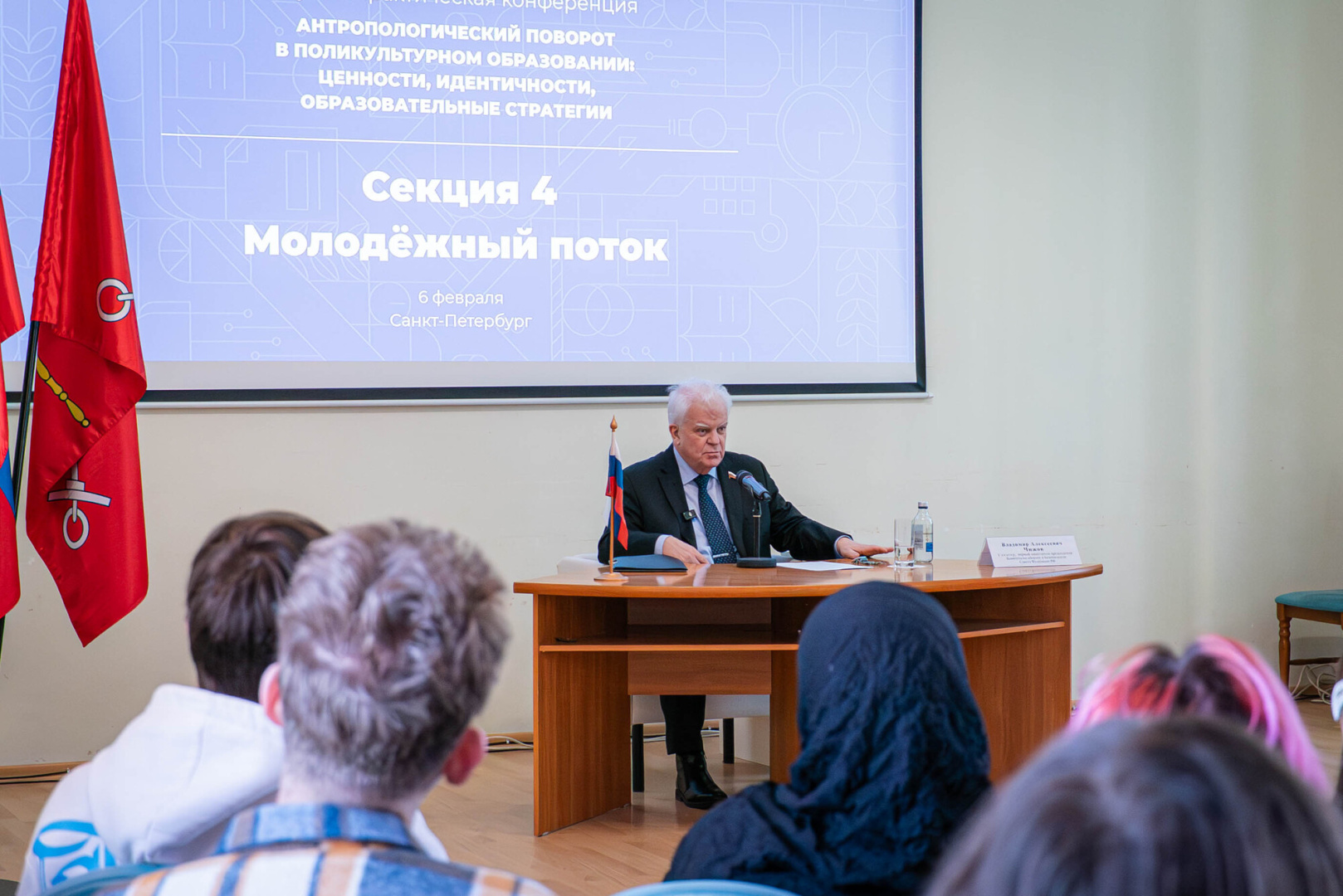 Первый заместитель председателя Комитета Совета Федерации по обороне и безопасности Владимир Чижов отметил: «В XXI веке человечество сталкивается с парадоксальной ситуацией. С одной стороны, с беспрецедентной глобализацией, стирающей пространственные и временные границы, а с другой — с усилением стремлений к сохранению культурной самобытности, ростом значимости этнической и гражданской деятельности. В этих условиях традиционная образовательная модель, ориентированная преимущественно на перенесение знаний, обнаруживает свою ограниченность. Именно поэтому столь актуален антропологический поворот — парадигма, которая возвращает в центр живую человеческую личность, признает многомерность человеческого опыта и рассматривает образование как пространство становления субъекта». Сенатор обозначил новые вызовы и задачи, стоящие перед современным образованием, включая необходимость сохранения идентичности, диалога культур, ценностного самоопределения и гибкости образовательных стратегий. Владимир Чижов подчеркнул особое значение русского языка как канала трансляции культурных ценностей, инструмента межкультурного диалога, средства формирования национальной идентичности и платформы международного сотрудничества.