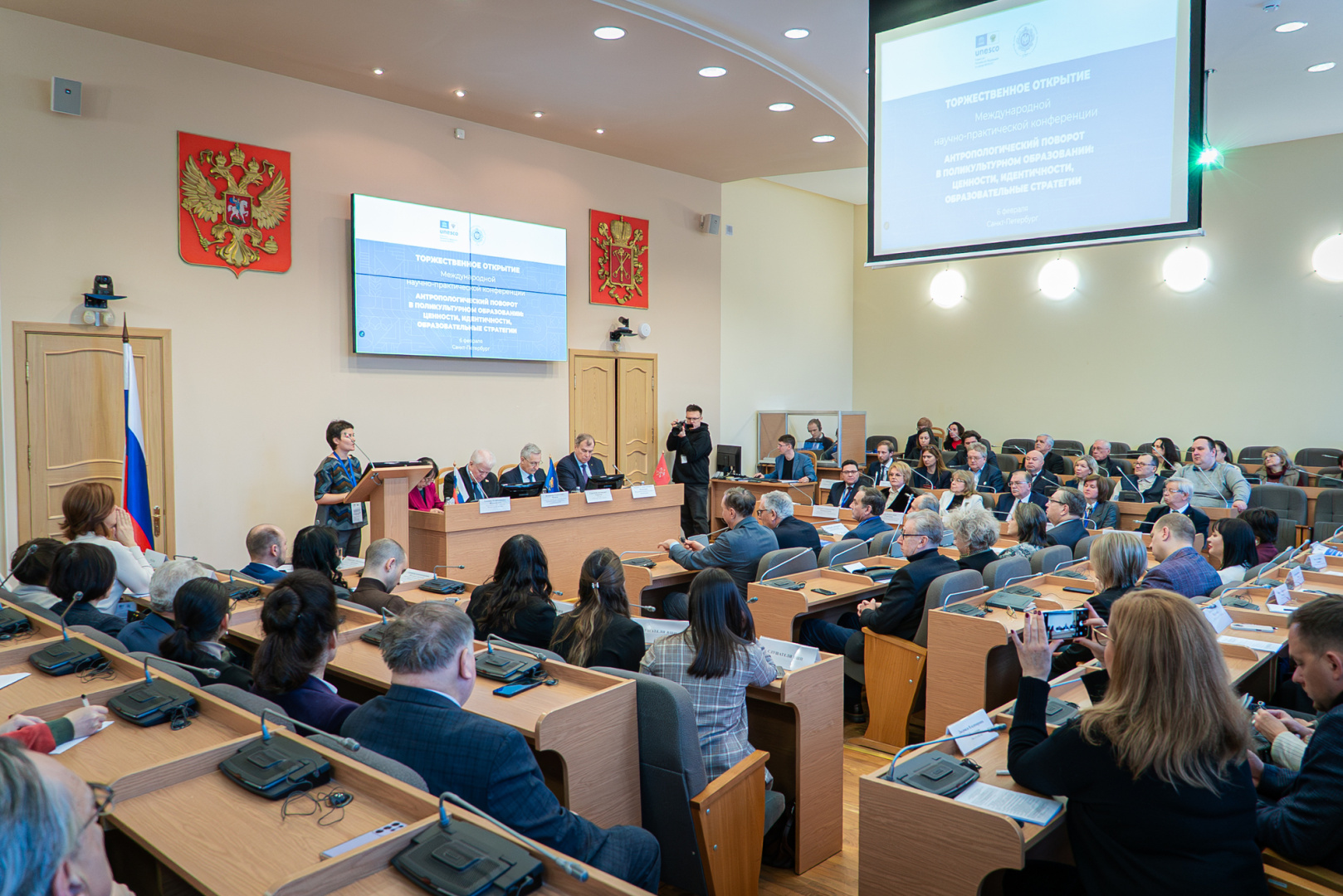 Ключевые доклады на пленарном заседании представили председатель Российского комитета по образовательным программам ЮНЕСКО, президент РУДН Владимир Филиппов, главный научный сотрудник — руководитель Центра фундаментальных исследований в сфере культуры, заведующий кафедрой ЮНЕСКО Российского научно-исследовательского института культурного и природного наследия им. Д. С. Лихачева Дмитрий Спивак, исполнительный директор фонда «Русский мир» Татьяна Шлычкова. В рамках научного события состоялась церемония вручения диплома и мантии почетного доктора РГПУ им. А. И. Герцена депутату, вице-президенту парламента кантона Женева, преподавателю Женевского университета Ги Меттану.