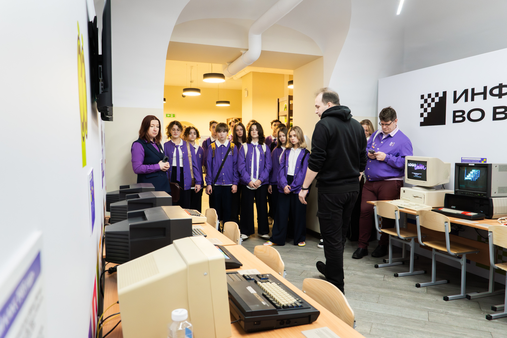 Директор по региональному развитию «Яндекс Образования» Вадим Жуков и директор «Яндекс Музея» Наталия Новикова провели экскурсию по экспозиции для первых гостей. Выставка включает два раздела: «Путешествие в прошлое: компьютерный класс 1985» и «Информатика во всем: профессии будущего».