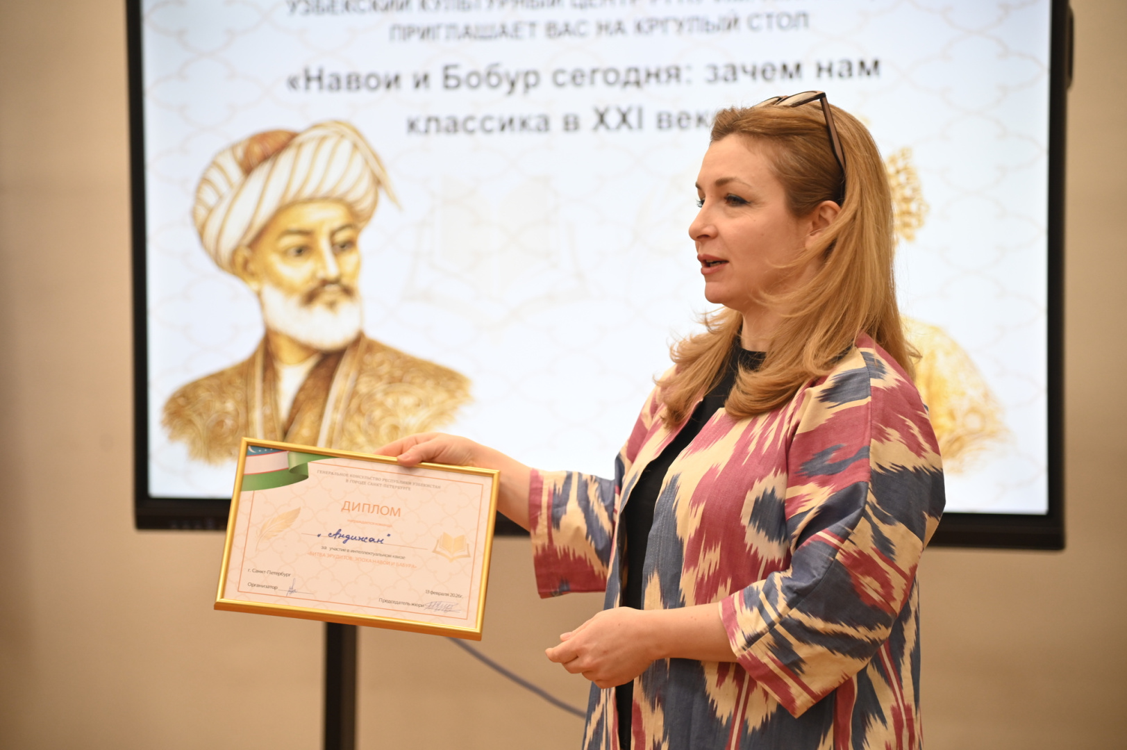 Организатором встречи выступила директор Узбекского культурного центра, преподаватель юридического факультета Асель Рашидова. «Круглый стол посвящен дням рождения двух великих мыслителей — Алишера Навои и Захириддина Мухаммада Бабура. Очень важно, что студенты из Узбекистана и учащиеся разных факультетов Герценовского университета продолжают чтить узбекские традиции, помнить культуру и искусство, придавать большое значение академическим знаниям, которые развиваются испокон веков. Мы стараемся поддерживать все начинания студентов, тем более те, которые связаны с популяризацией науки, поэтому наши творческие вечера и круглые столы проходят систематически», — прокомментировала она.