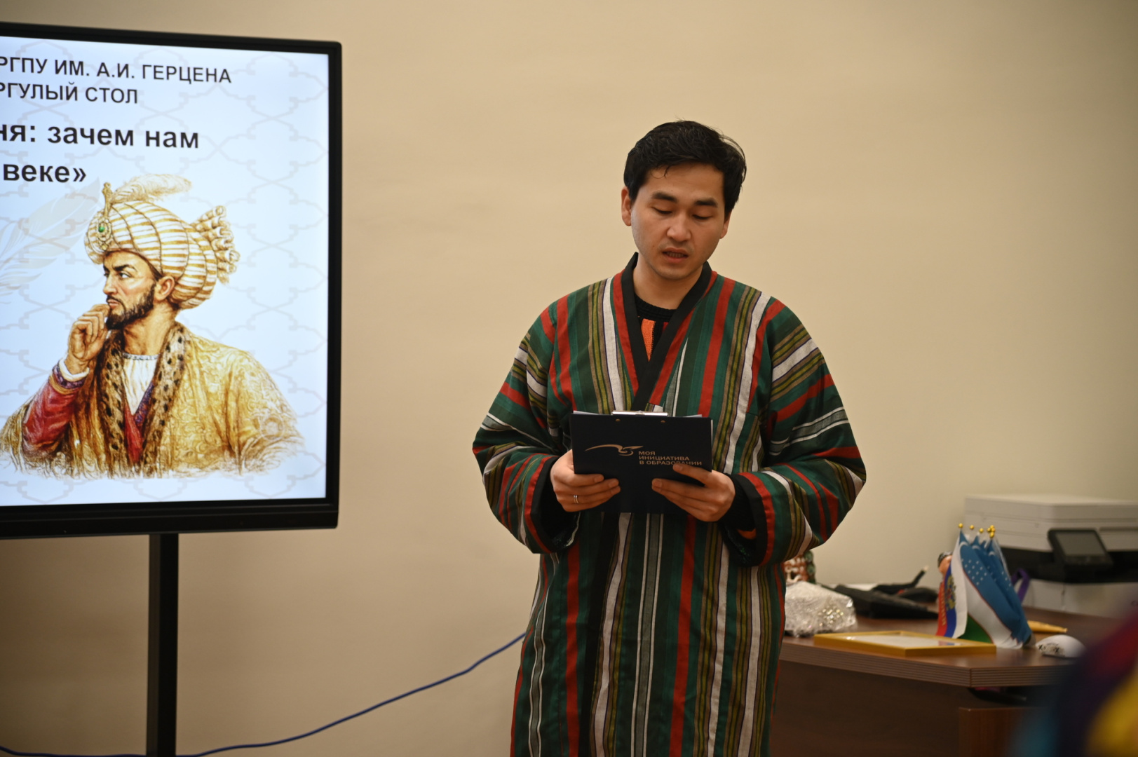 В Узбекском культурном центре РГПУ им. А. И. Герцена прошел круглый стол «Навои и Бабур сегодня: зачем нам классика в XXI веке». Мероприятие, приуроченное к Году единства народов России, объединило студентов из Узбекистана и герценовцев, интересующихся культурой и традициями этой страны.