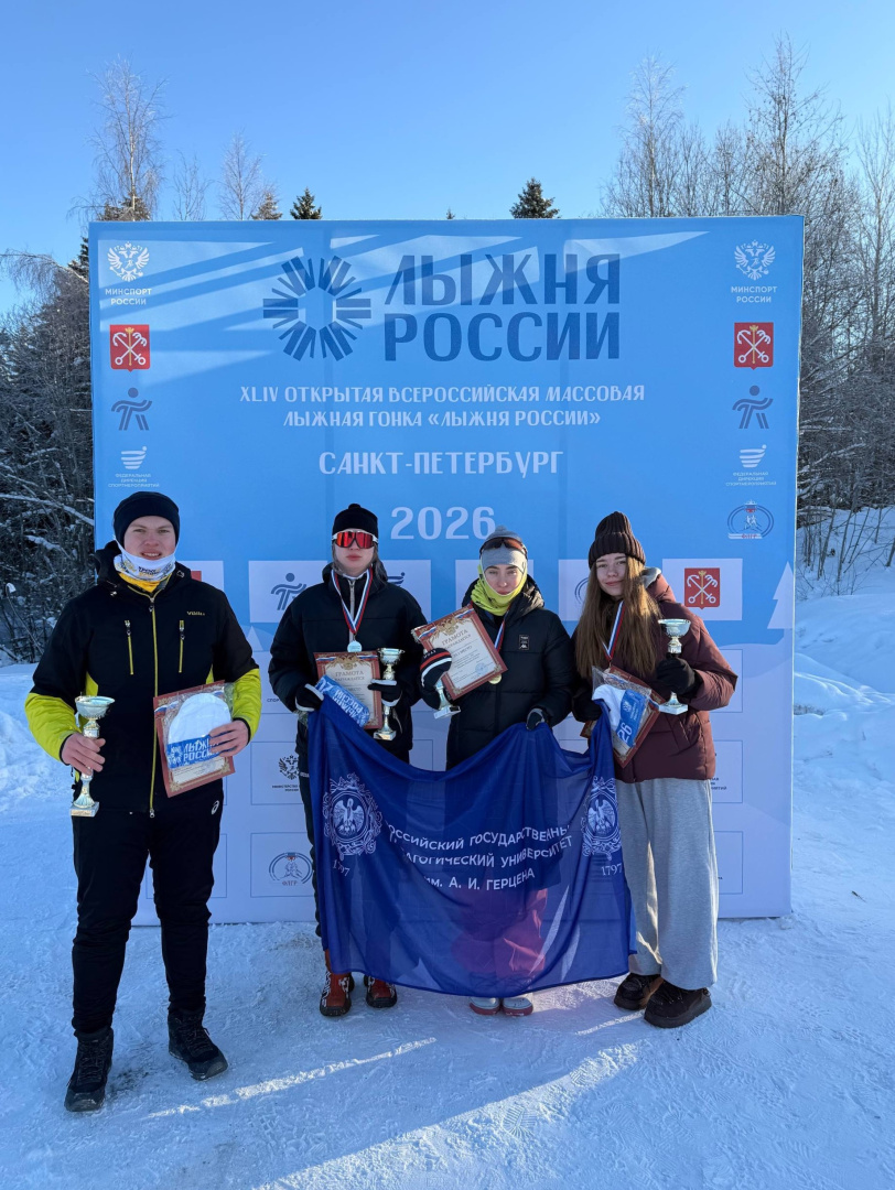 Студенты и сотрудники РГПУ им. А. И. Герцена стали победителями и призерами Всероссийских массовых соревнований «Лыжня России ‒ 2026». Старты проходили во всех районах Санкт-Петербурга. Команды Герценовского университета особенно массово были представлены на основной площадке ‒ на Крестовском острове, а также в Центральном и Фрунзенском районах и на «Пушкинской лыжне» на территории Нижнего парка в Пушкине.