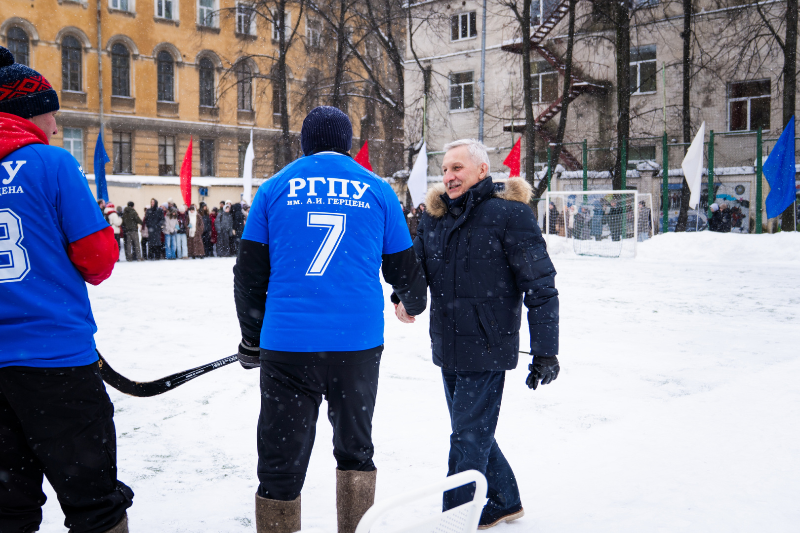 Спортивное событие открыл ректор РГПУ им. А. И. Герцена Сергей Тарасов. «В этом году совпало так, что два значимых для россиян праздника, Масленица и 23 Февраля, идут практически бок о бок. Сегодня День защитника Отечества отмечается довольно широко и связан не только с армией и флотом, но и с работой учителя, ведь от того, как мы воспитаем будущее поколение, зависит в том числе безопасность нашей страны. В преддверии праздников мы посоревнуемся в различных состязаниях и понаблюдаем за прекрасным видом спорта — хоккеем в валенках. Желаю и участникам, и болельщикам получить огромное удовольствие от игры», — сказал ректор.