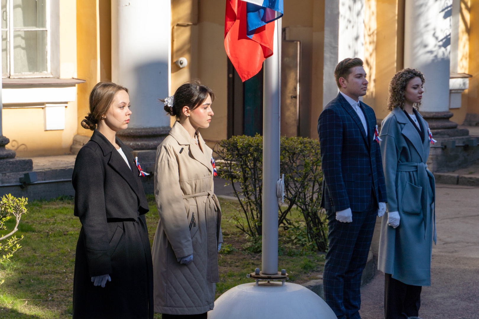 Права поднять флаг были удостоены герценовцы, отличившиеся в учебе, спорте и науке: студент факультета географии, заместитель председателя СНО факультета, призер и победитель регионального этапа ВсОШ по географии, физической культуре и ОБЖ, спортсмен сборной университета по плаванию со званием кандидата в мастера спорта Вадим Веретенников; студентка института философии человека, член правления Ассоциации Совета молодых ученых и специалистов и СНО Северо-Западного федерального округа, организатор региональной межвузовской научно-практической конференции «Перспективы: молодежь в науке и образовании» Екатерина Коваленко; студентка института иностранных языков, активный волонтер, призер онлайн-конкурса перевода публицистического текста, посвященного Году защитника Отечества в рамках Международного лингвистического форума, победитель конкурса переводов научно-популярных текстов по медицине Дарья Сокольникова; студентка филологического факультета, участник Школы вожатского мастерства СПО «Кислород» и занятий по подготовке студентов-кураторов, активист профкома университета Галина Гончарова.