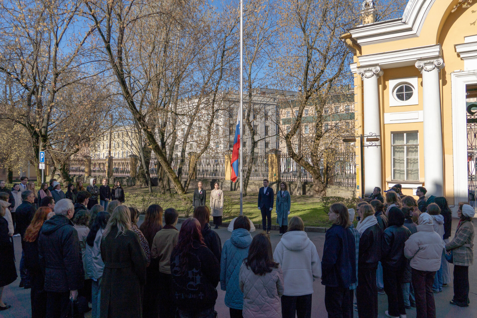 Новая неделя в РГПУ им. А. И. Герцена стартовала с церемонии поднятия флага Российской Федерации. В ней приняли участие представители ректората вуза, руководители подразделений, сотрудники и студенты.
