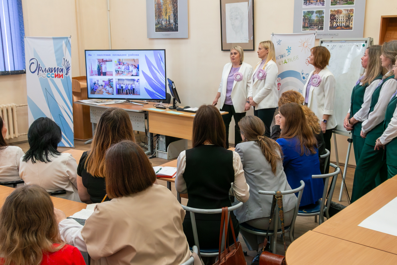 В ходе мастер-классов участники познакомились с опытом внедрения и реализации проекта на примере образовательных учреждений Санкт-Петербурга. В завершающей части установочного семинара, которая прошла в формате круглого стола, обсуждались аспекты преемственности в воспитательной работе детского сада и школы. Спикеры раскрыли важность включения всех субъектов образовательных отношений в реализацию проекта, наметили дальнейшие линии взаимодействия по органичному включению проекта «Орлята-дошколята» в практику современного детского сада, определили актуальную повестку обсуждений, наметив необходимость организации системы методических событий для участников проекта для его развития и продвижения в Северо-Западном федеральном округе. Экспертами выступили главный специалист отдела общего образования департамента управления в сфере общего, дополнительного образования и защиты прав детей Комитета общего и профессионального образования Ленинградской области Лилия Савина, заведующая кафедрой педагогики начального образования и художественного развития ребенка Людмила Савинова, заведующая детским садом № 6 общеразвивающего вида с приоритетным осуществлением деятельности по физическому развитию детей Петродворцового района Санкт-Петербурга Елена Кудрейко, региональный координатор программы развития социальной активности учащихся начальных классов «Орлята России» в Ленинградской области Михаил Смолин, региональный координатор программы «Навигаторы детства» в Санкт-Петербурге Татьяна Масленицына, методист отдела обеспечения реализации программы «Орлята России» ВДЦ «Орленок» Ольга Телешева.