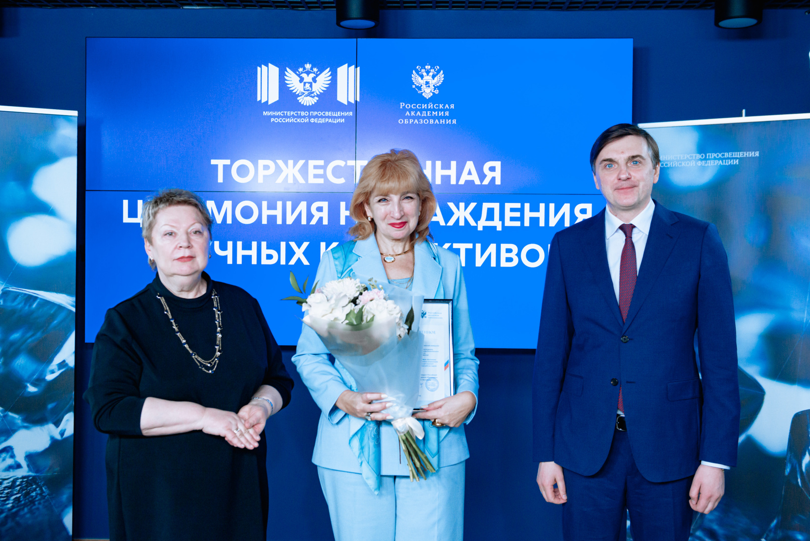 Церемония награждения научных коллективов за лучшие практические решения актуальных проблем образования состоялась в Министерстве просвещения РФ. Благодарственные письма вручили Министр просвещения РФ Сергей Кравцов и президент Российской академии образования Ольга Васильева. В том числе отмечены ученые РГПУ им. А. И. Герцена: автор учебников русского языка для рабочих специальностей Елизавета Хамраева и разработчик системы психологической безопасности студентов на недавно принятых в состав РФ территориях Ирина Баева.